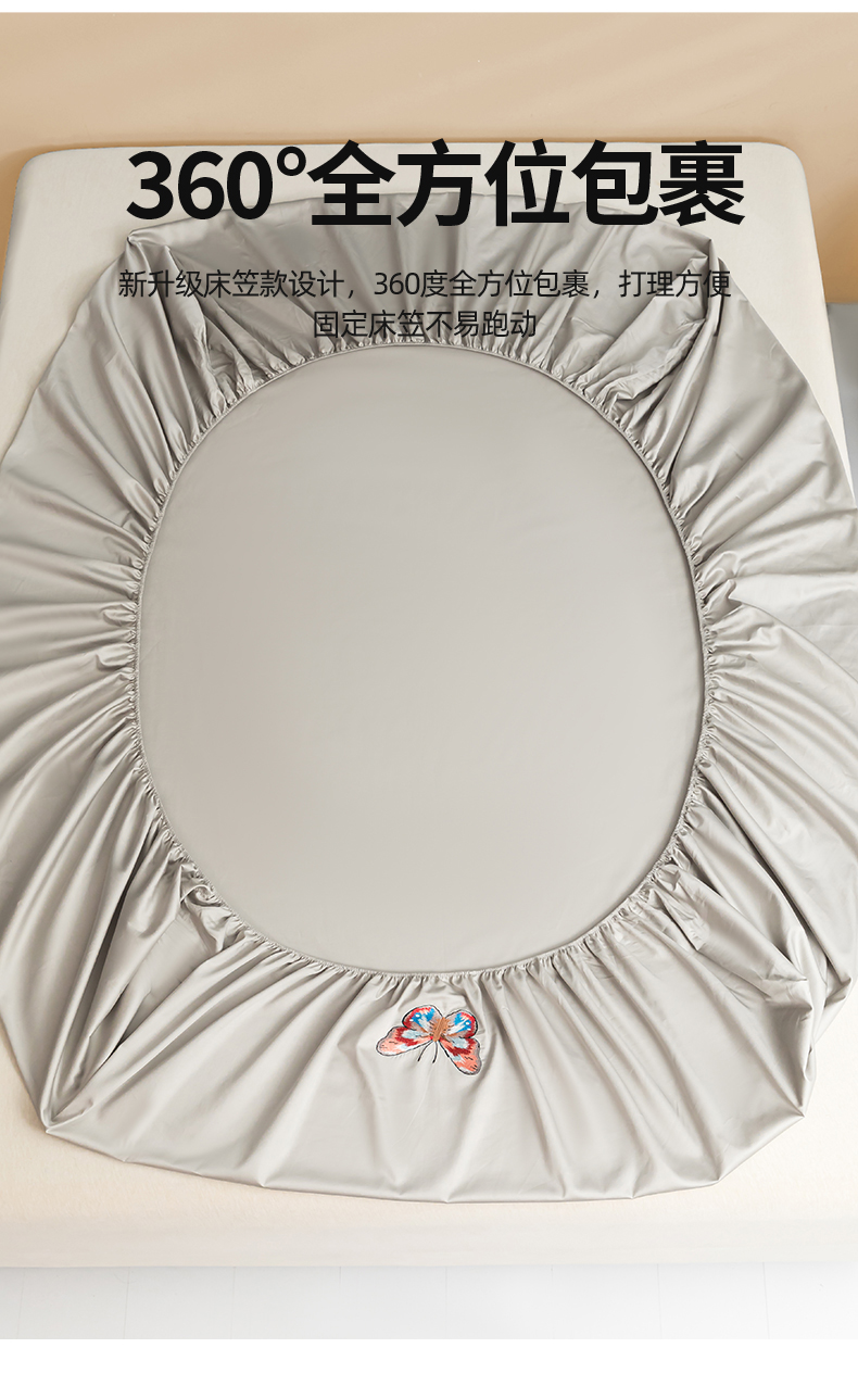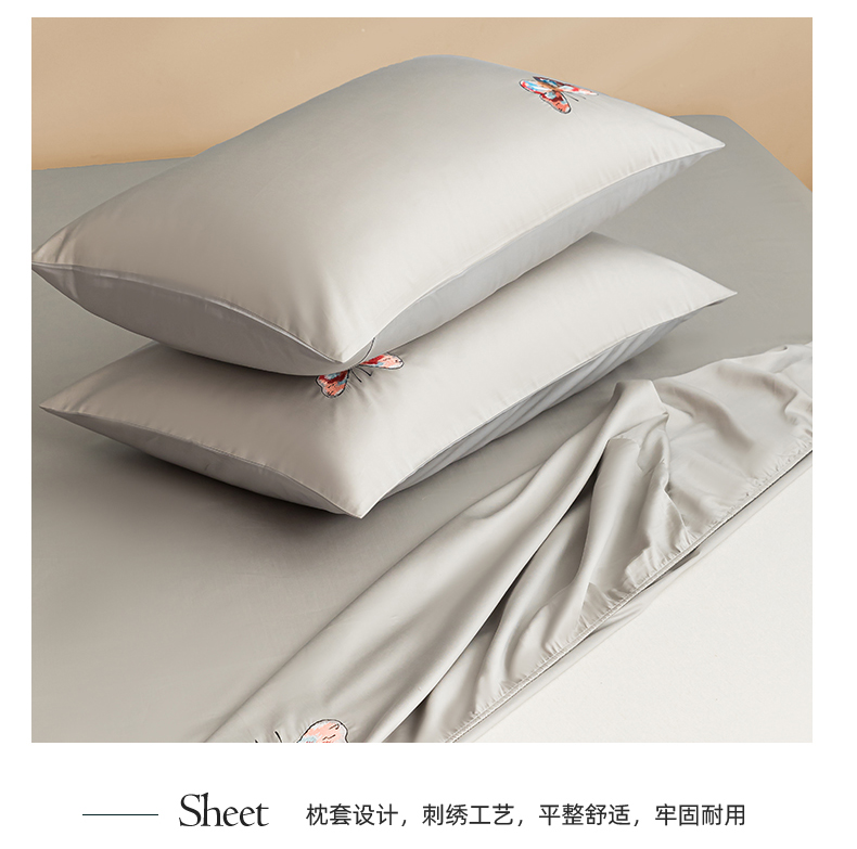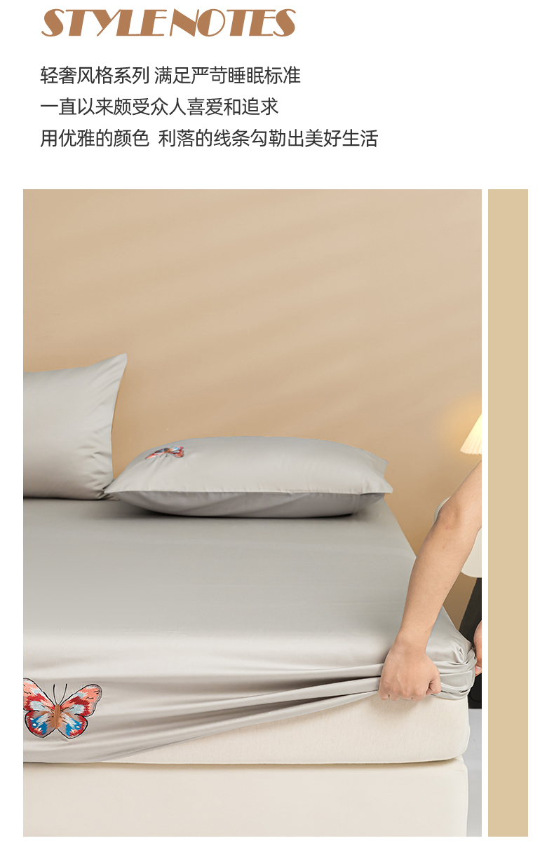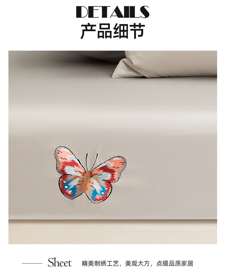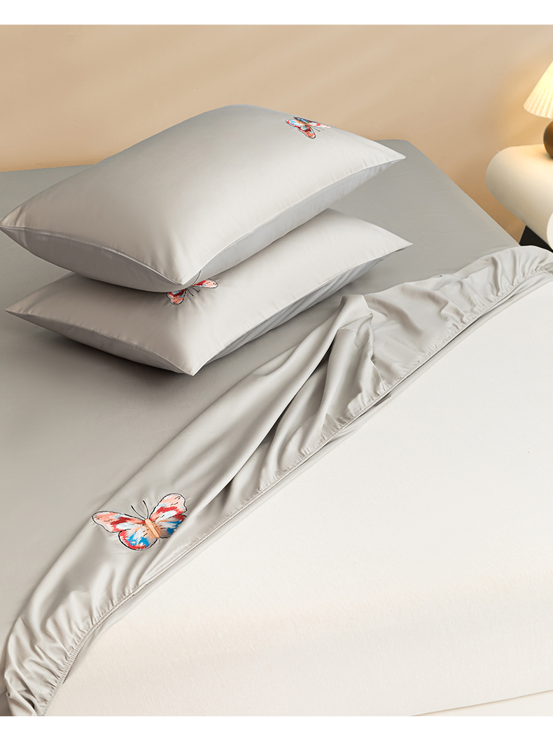 • 91家纺网 家纺一手货源 找家纺 蓝米卡夫 2024新款A类100支全棉刺绣蝶恋系列单床笠三件套 蝶恋100支-雅士灰