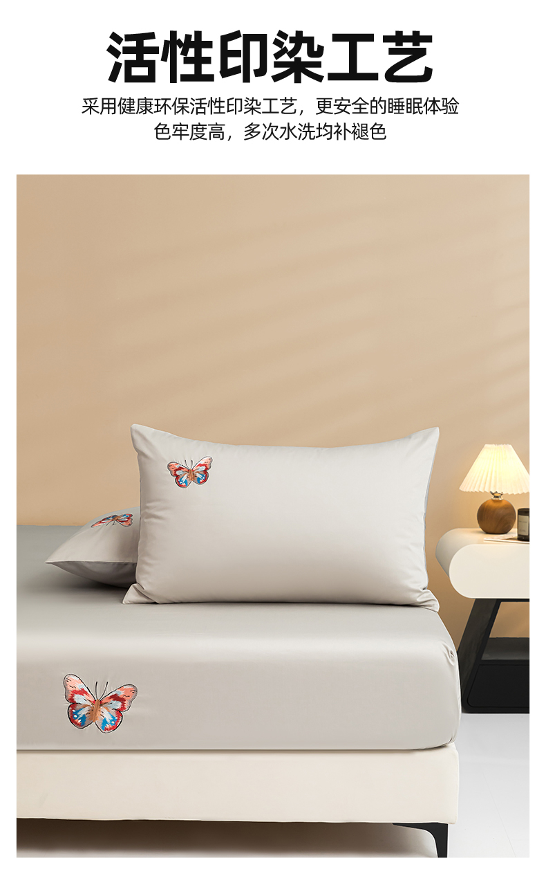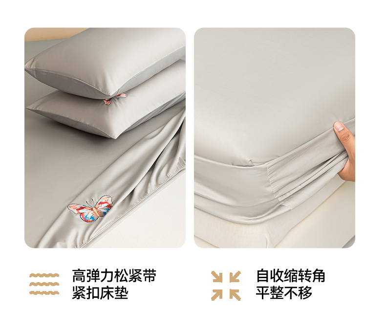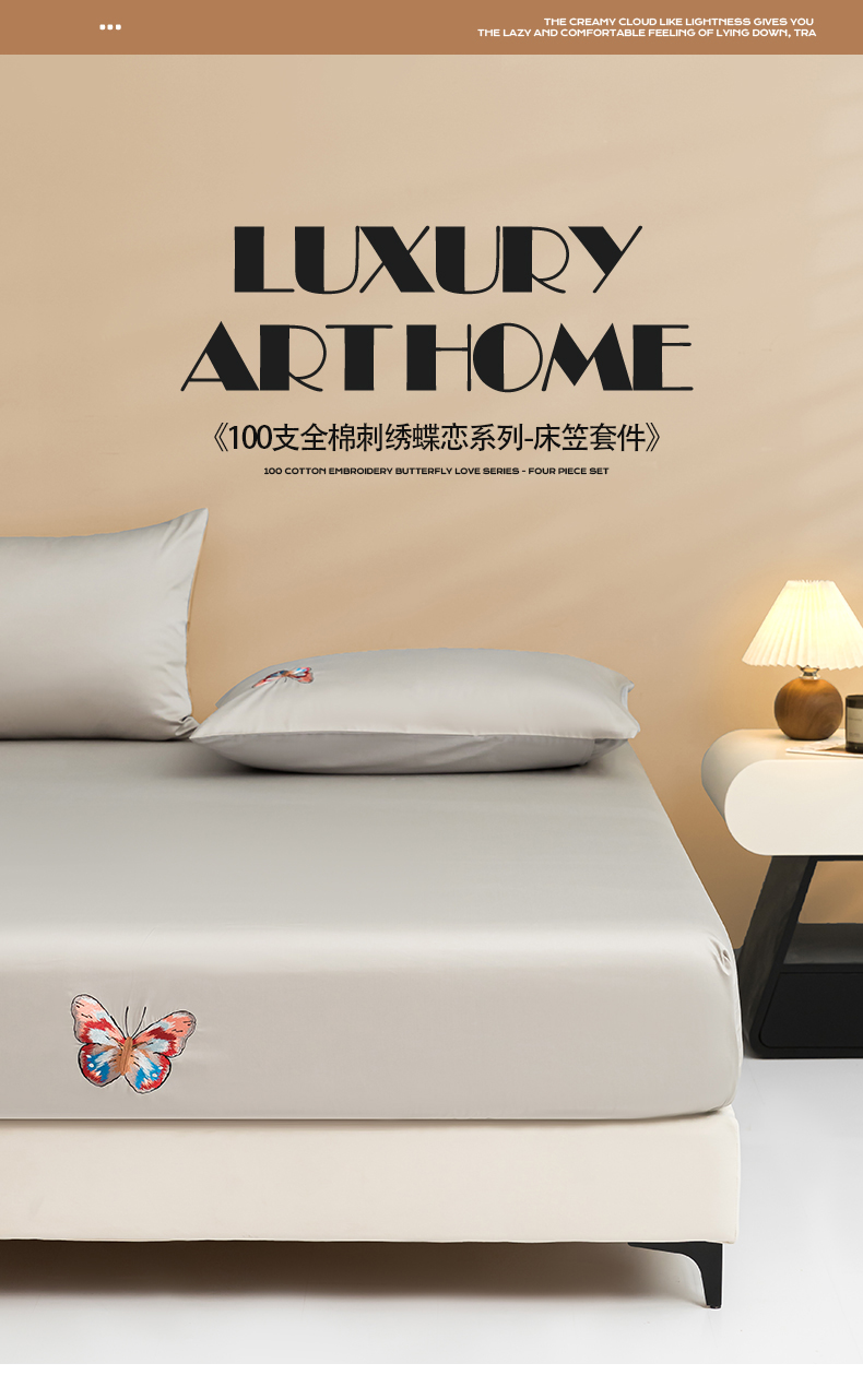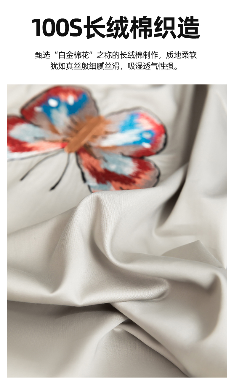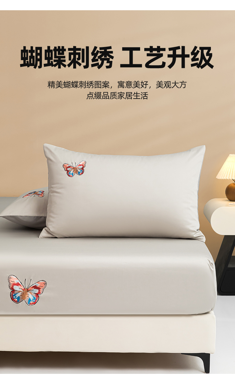 • 91家纺网 家纺一手货源 找家纺 蓝米卡夫 2024新款A类100支全棉刺绣蝶恋系列单床笠三件套 蝶恋100支-雅士灰