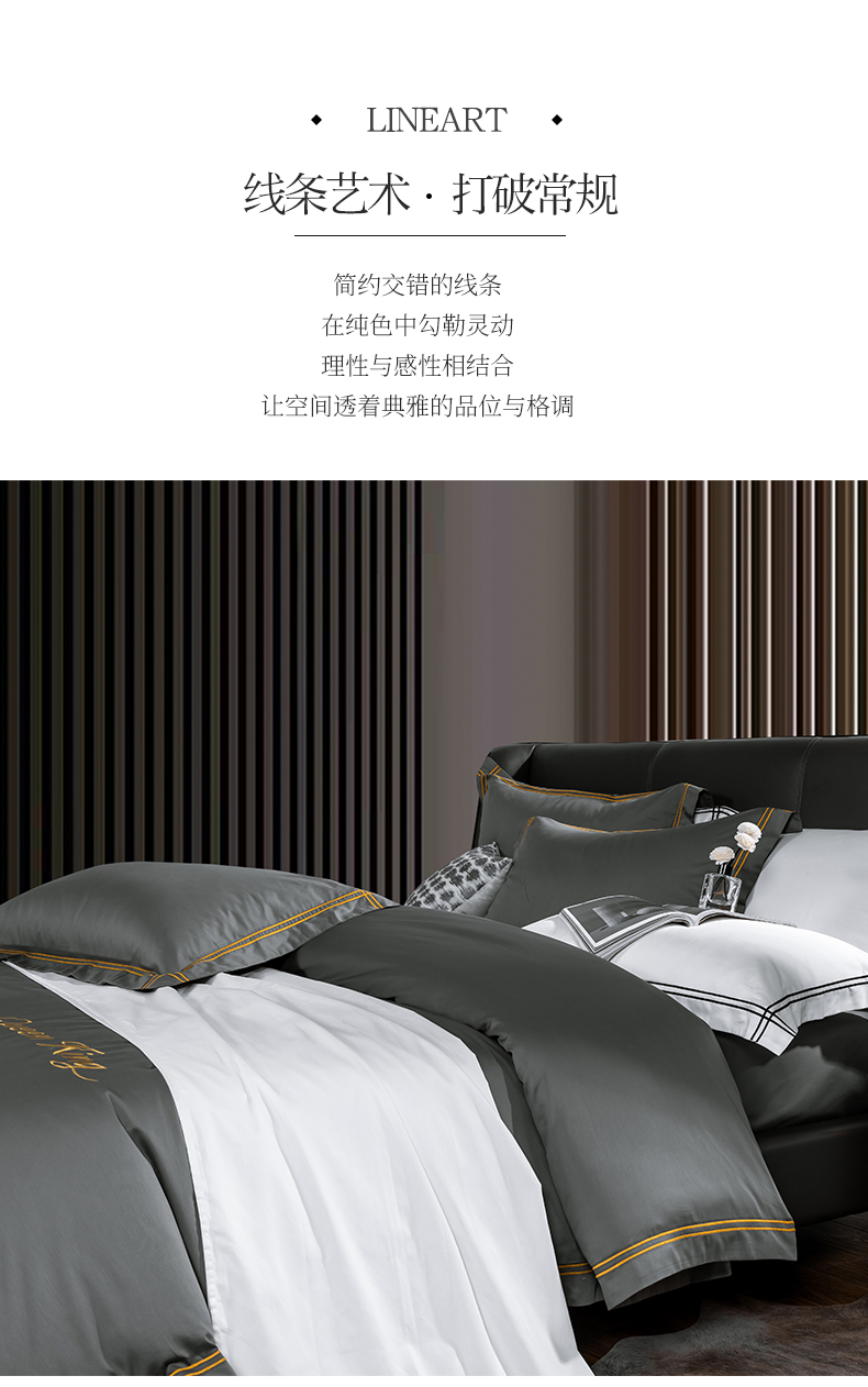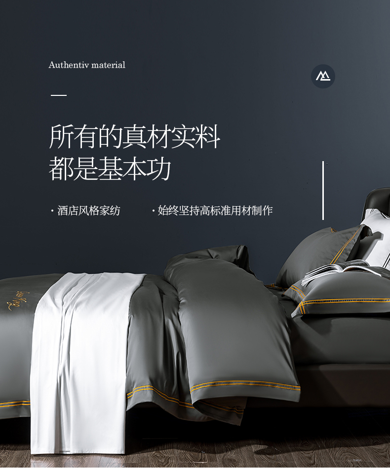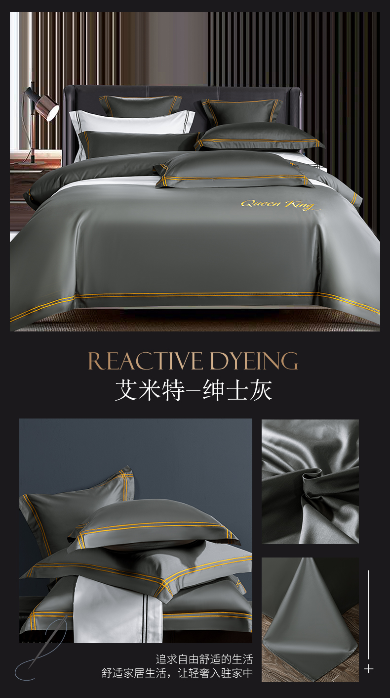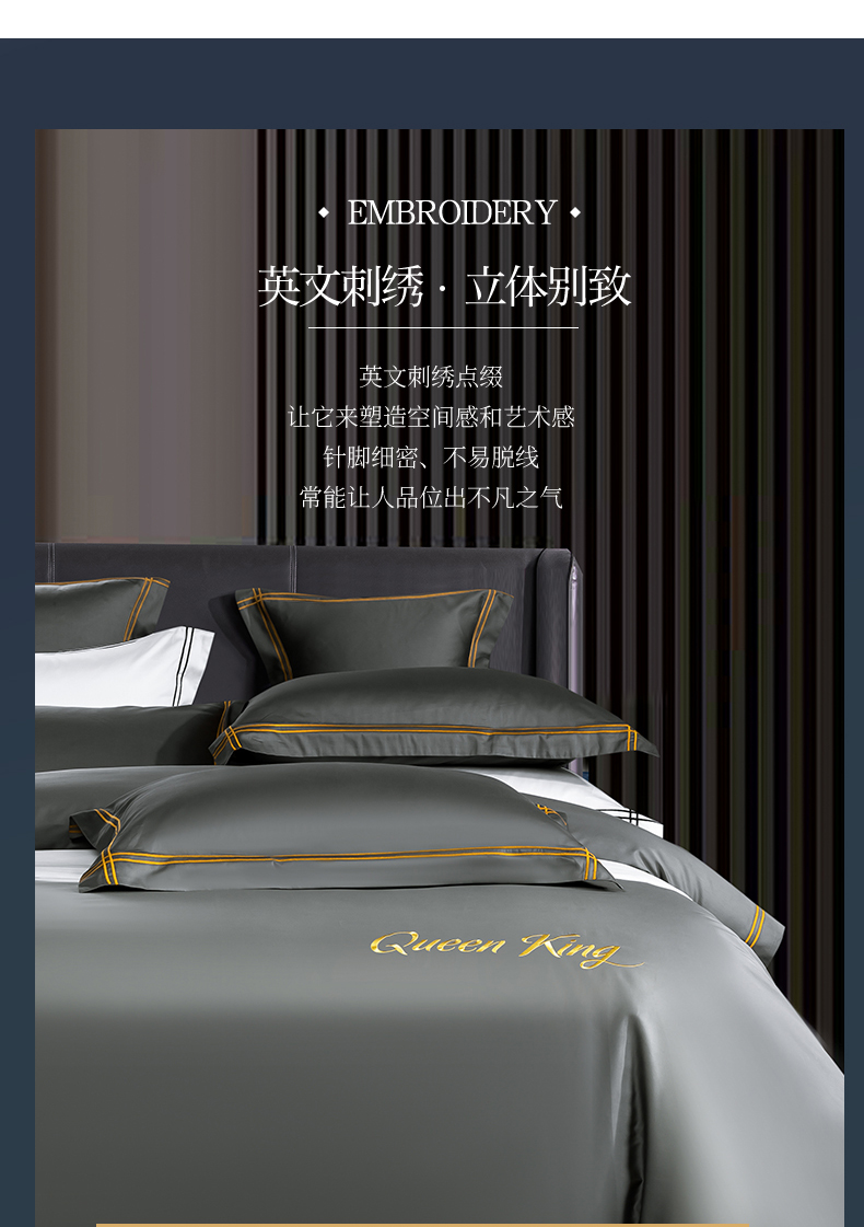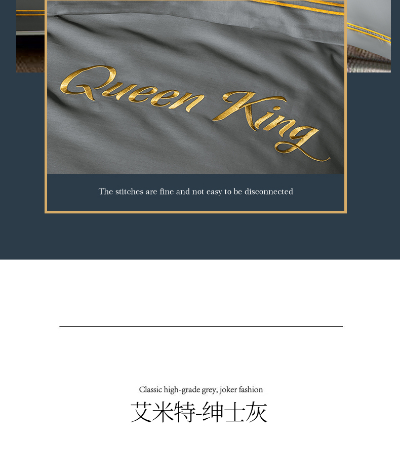 商品名称:蓝米卡夫 2024新款A类100支全棉刺绣艾米特系列四件套(礼盒包装) 艾米特-绅士灰