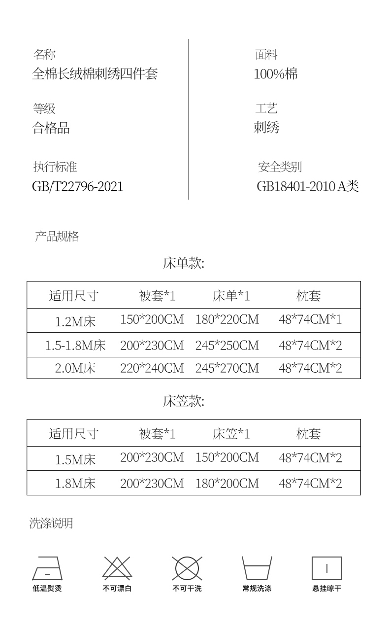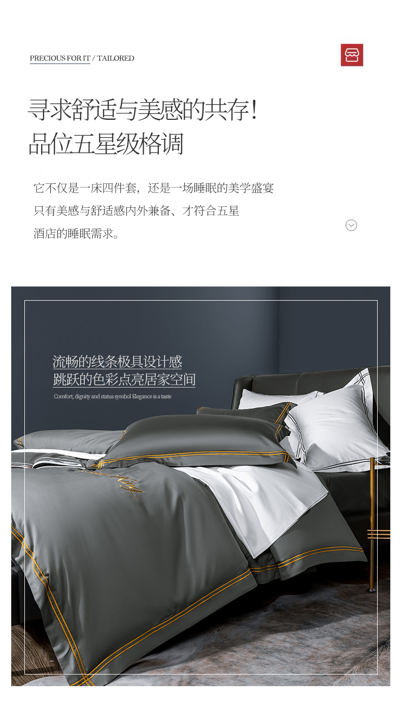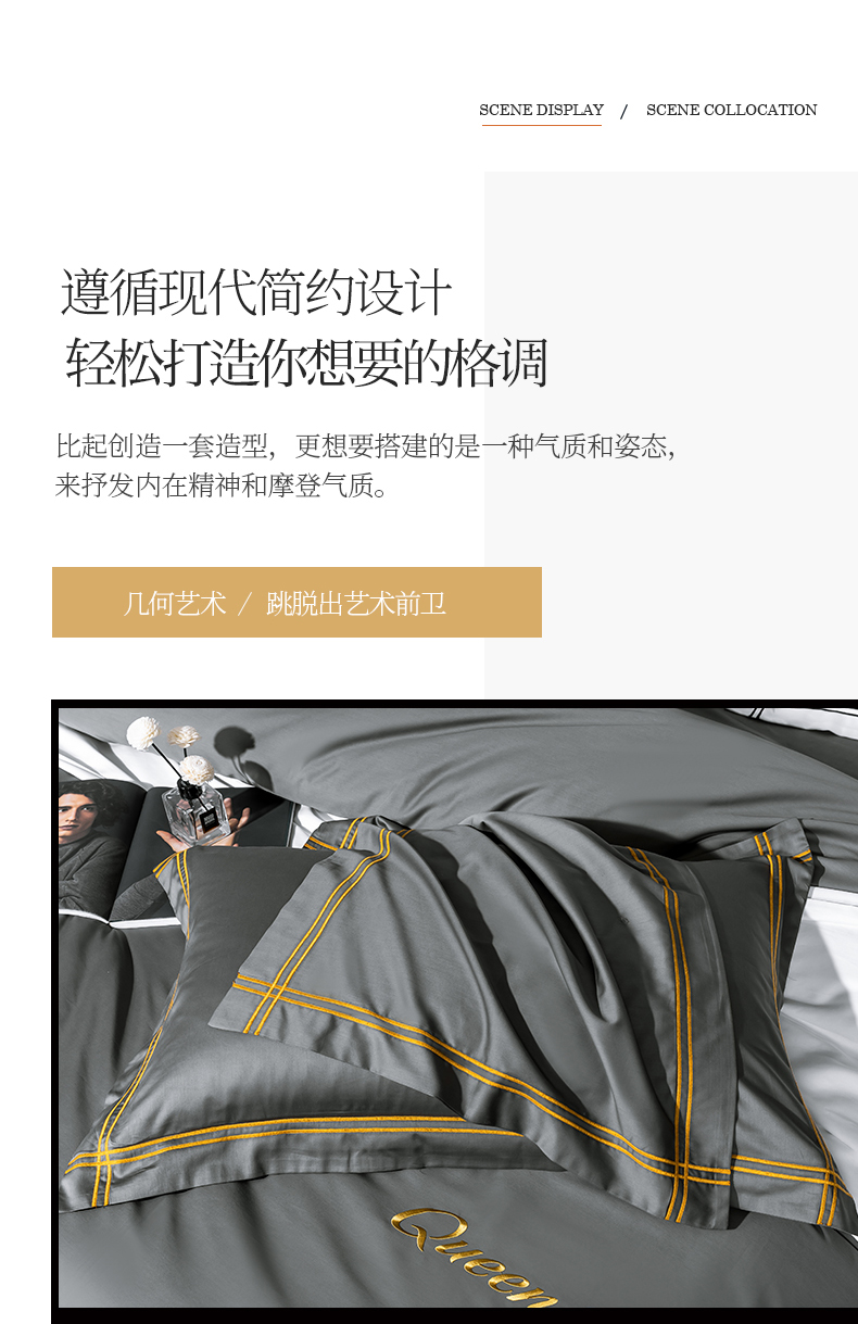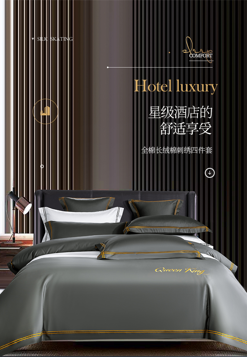 商品名称:蓝米卡夫 2024新款A类100支全棉刺绣艾米特系列四件套(礼盒包装) 艾米特-绅士灰
