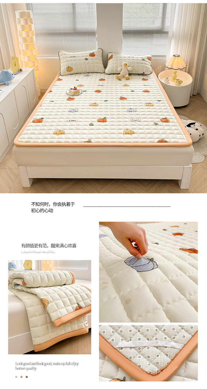 商品名称:花言狐语 2025新款水洗棉加厚夹棉防滑床褥子(印花系列)-大床 南瓜