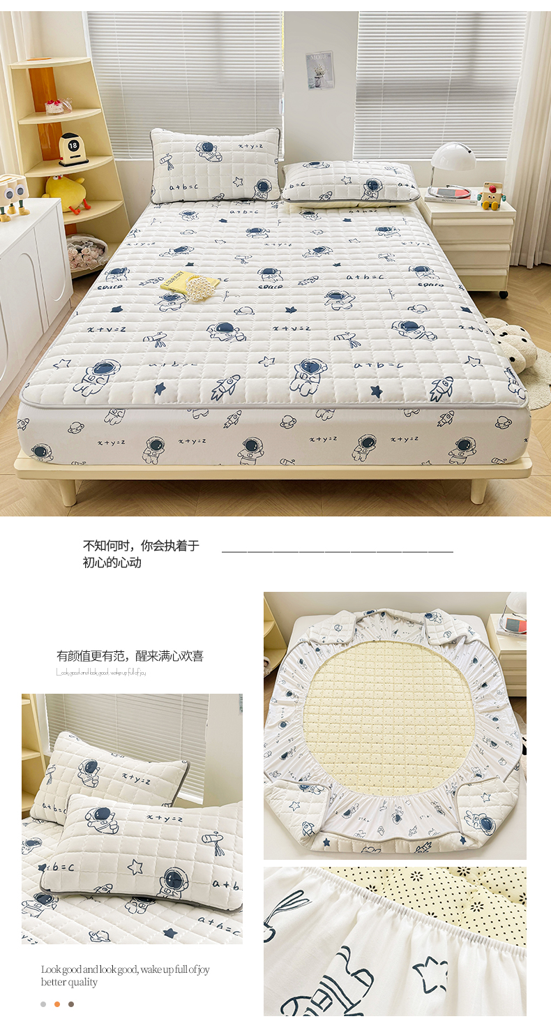 商品名称:花言狐语 2025新款水洗棉夹棉加厚床笠(印花系列)-大床 太空人