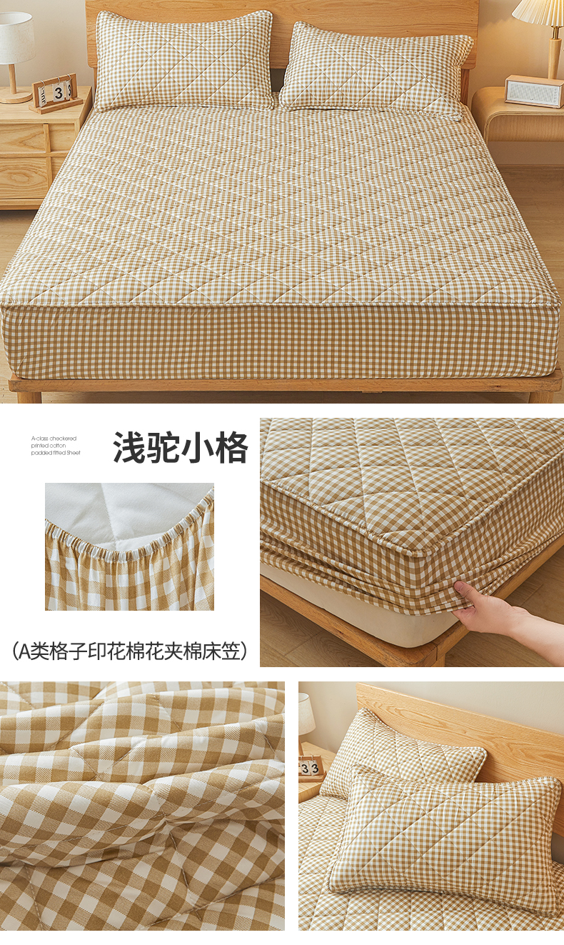 商品名称:多谷家纺 2024新款格子无印风系列棉花夹棉床笠 浅驼小格