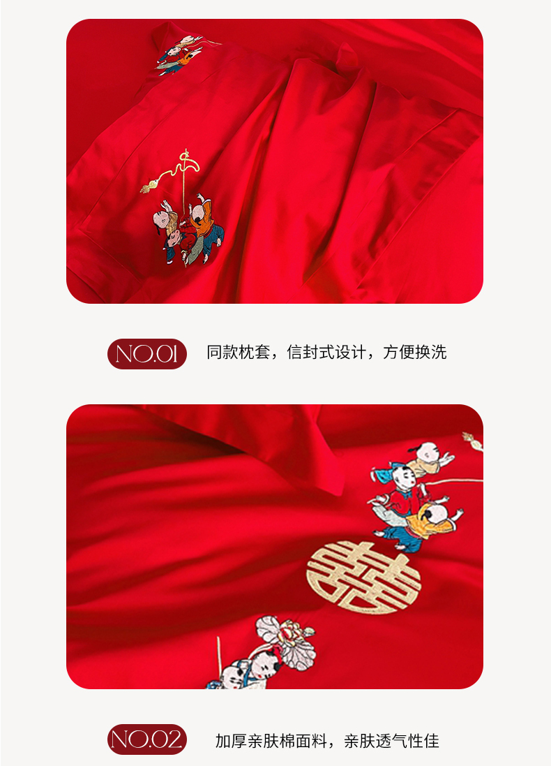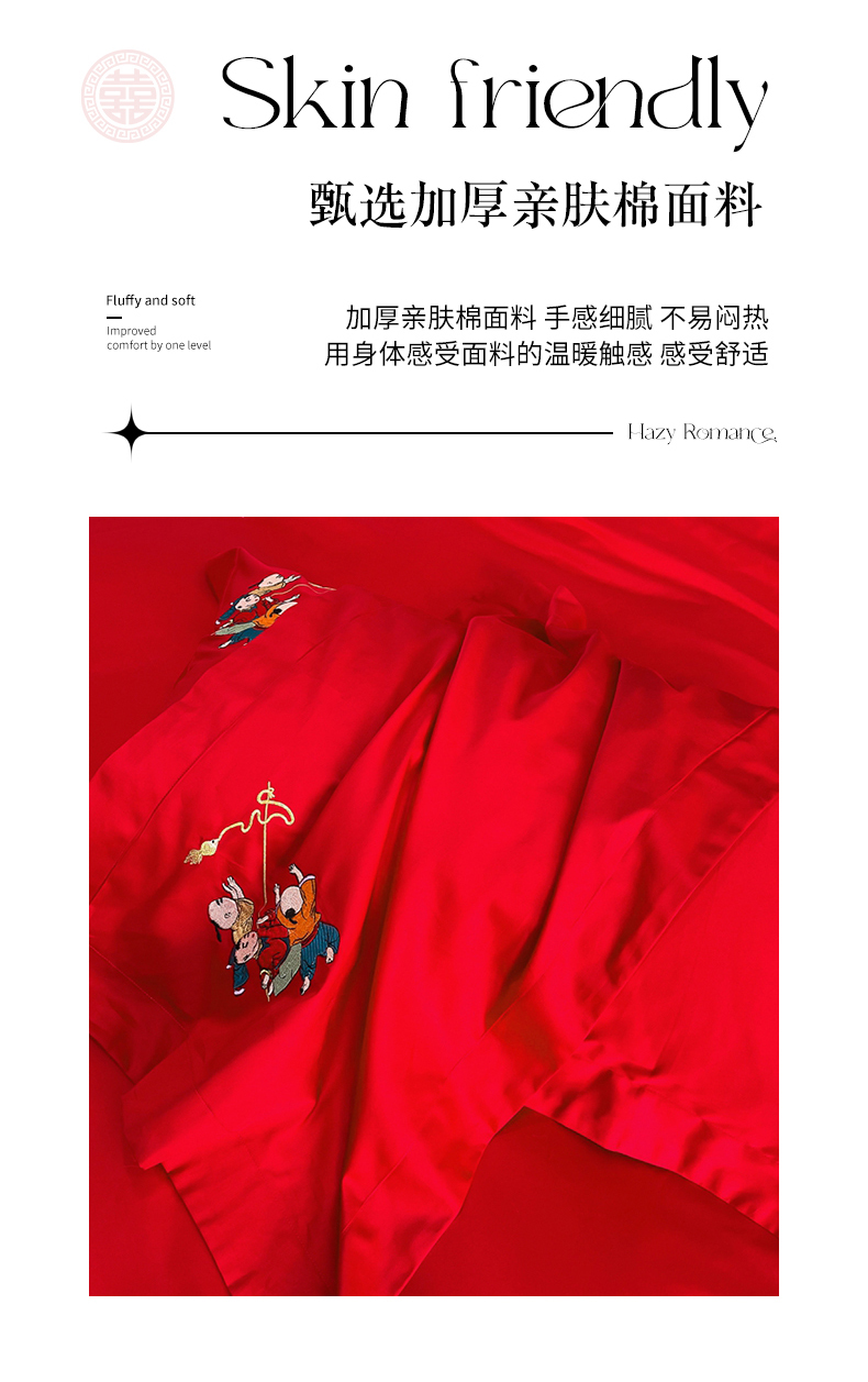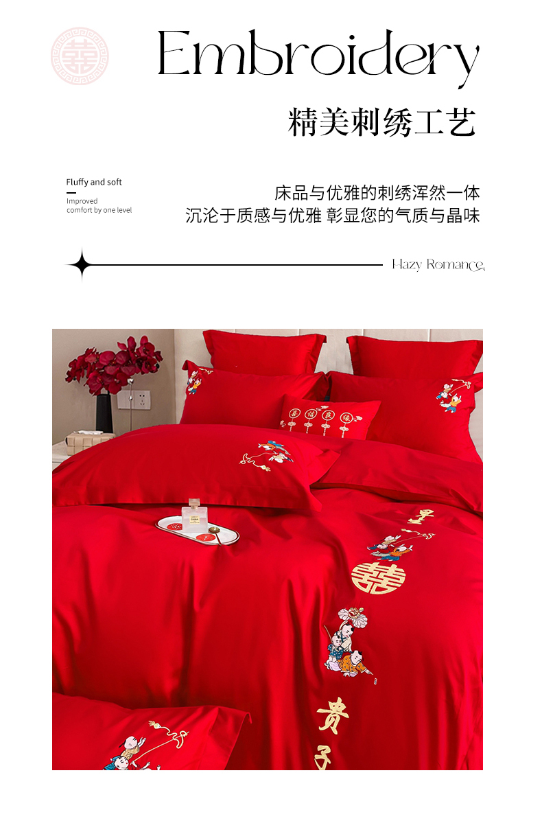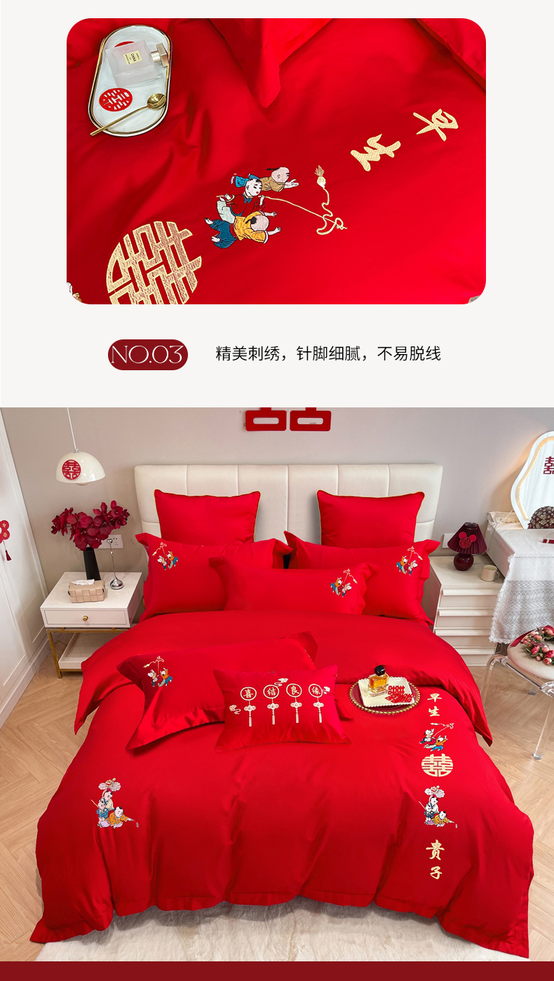当前位置: 91家纺网 > 商品网购 > 床品套件 > 四件套 > 婚庆四件套 > 金麦家纺 2024新款婚庆加厚亲肤棉刺绣套件婚庆四件套六件套小红书推荐 百子纳福