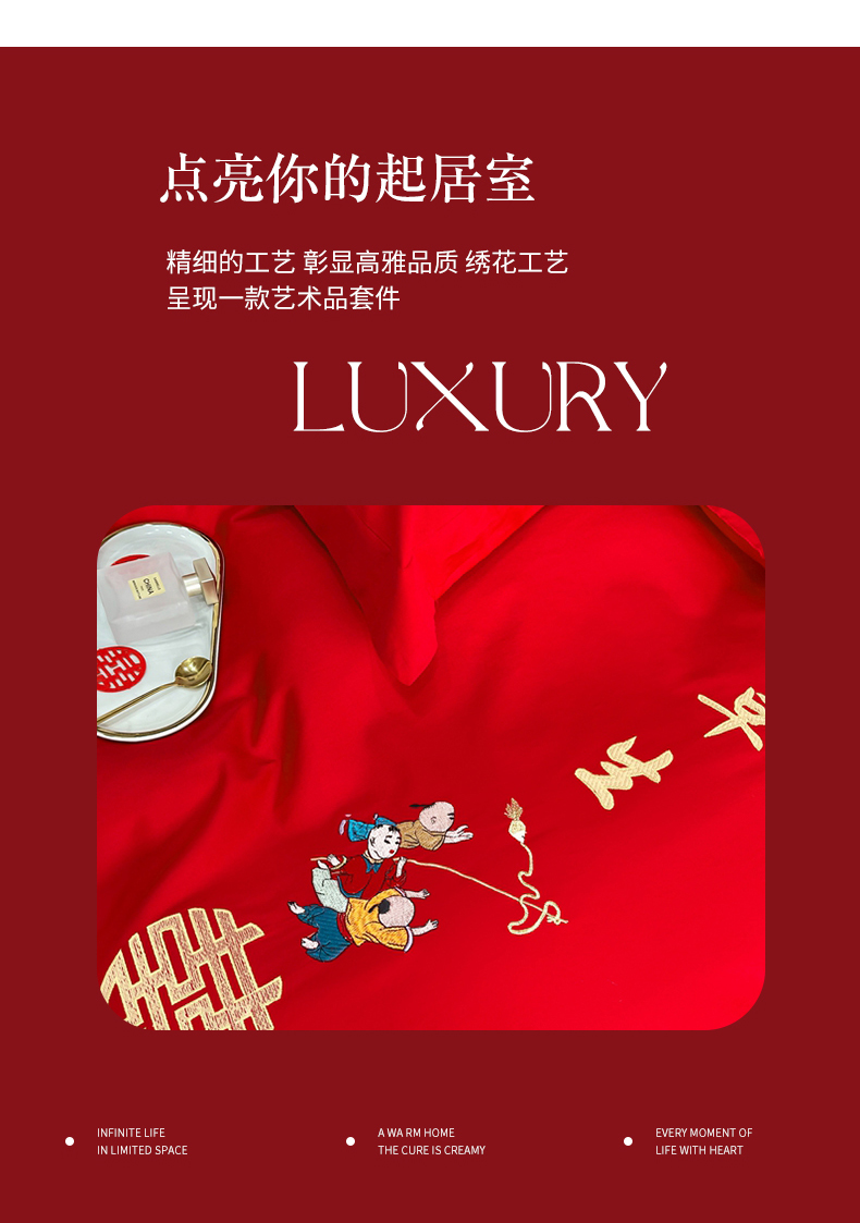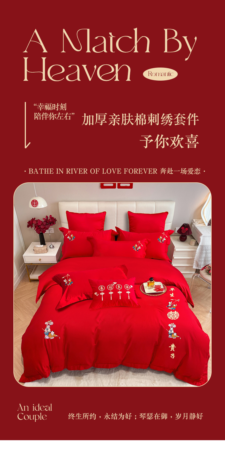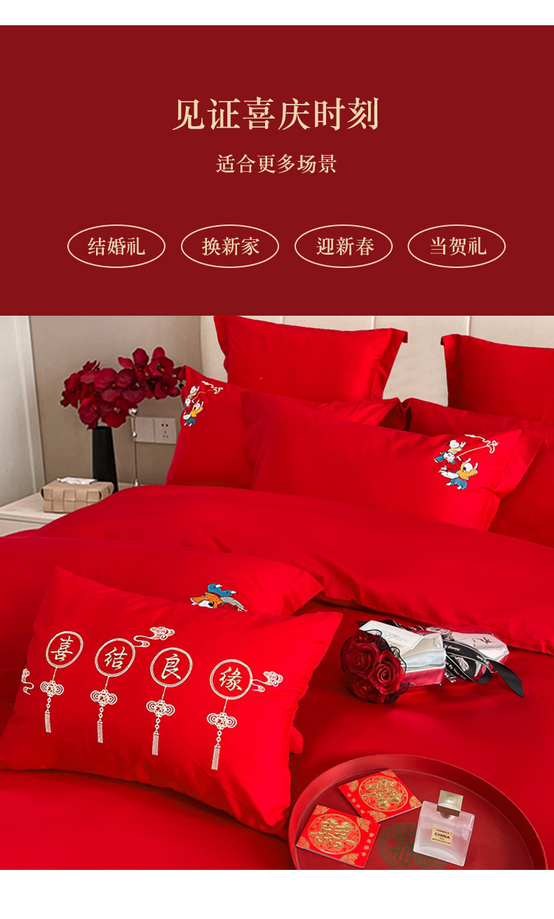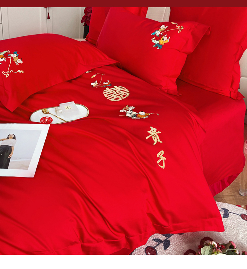 当前位置: 91家纺网 > 商品网购 > 床品套件 > 四件套 > 婚庆四件套 > 金麦家纺 2024新款婚庆加厚亲肤棉刺绣套件婚庆四件套六件套小红书推荐 百子纳福