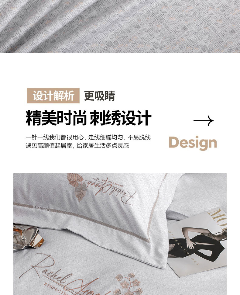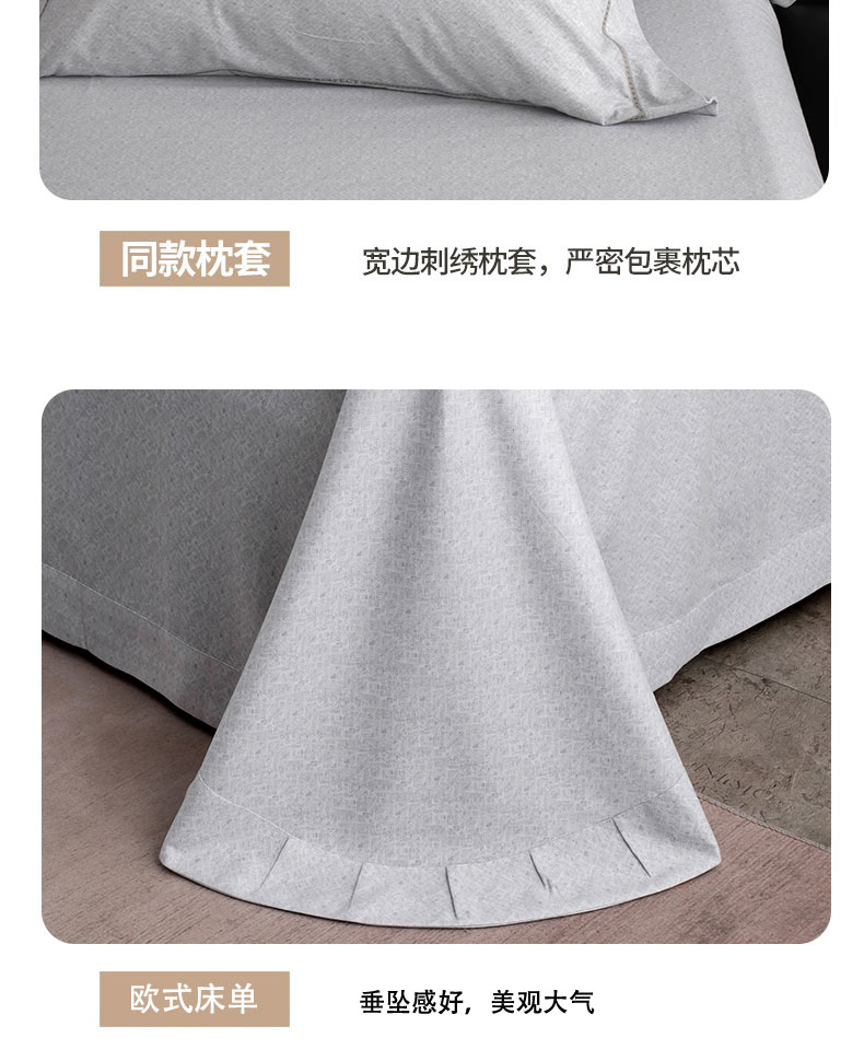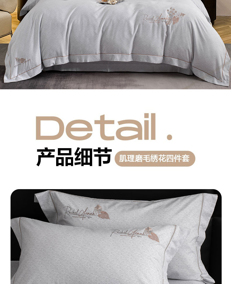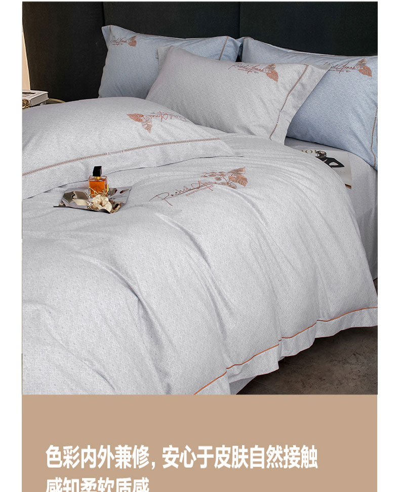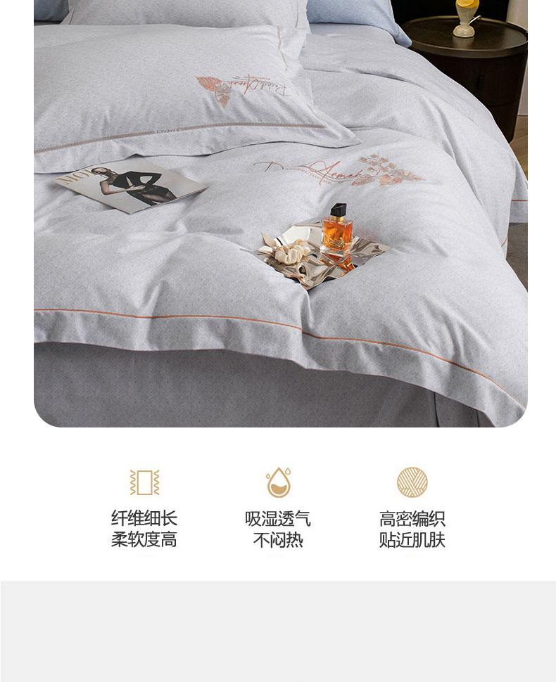 商品名称:蒂爵 全棉纯棉长绒棉肌理纹刺绣磨毛四件套-花意 花意-浅灰