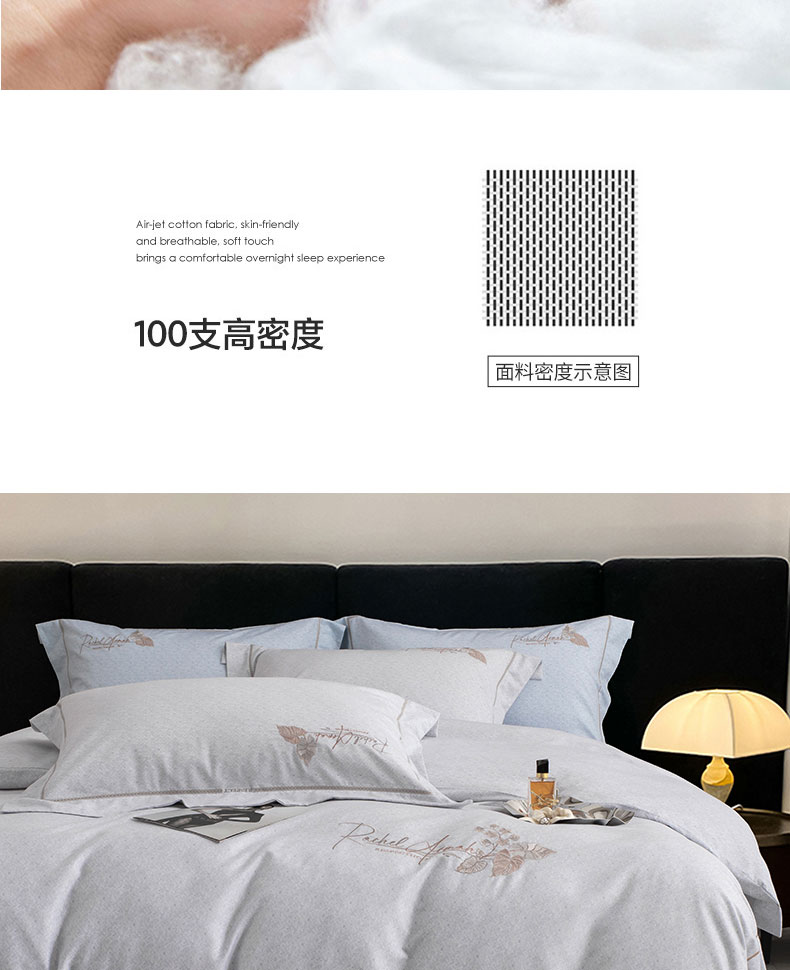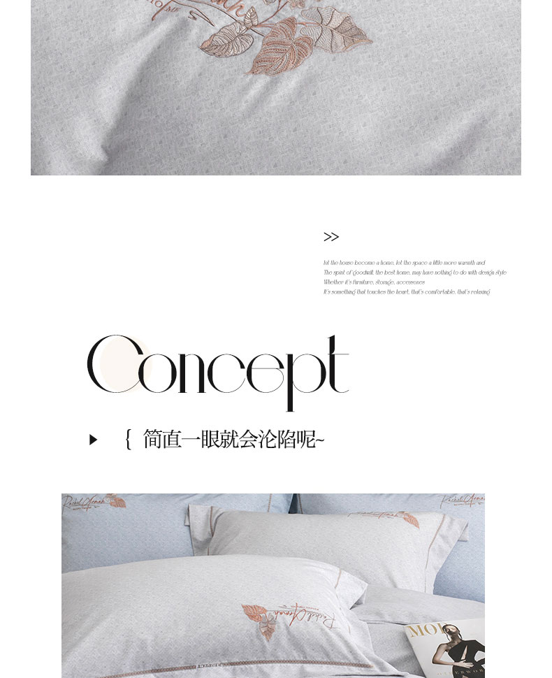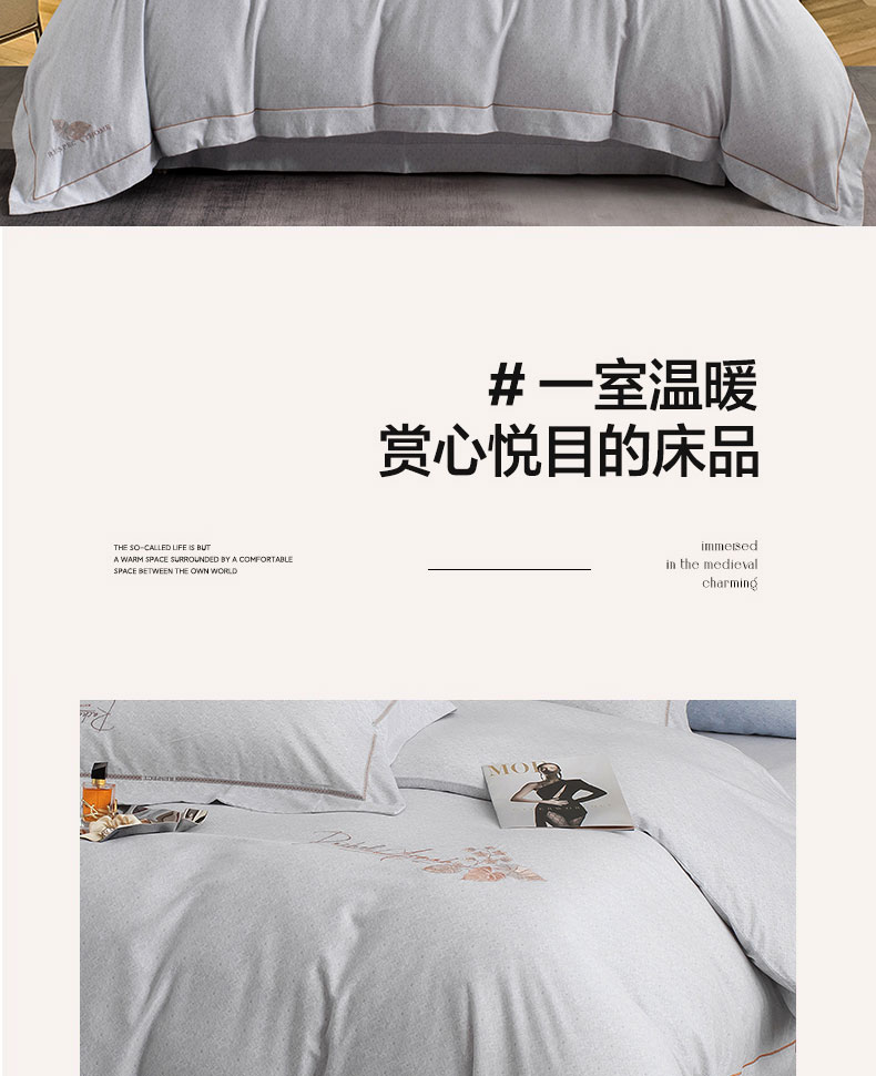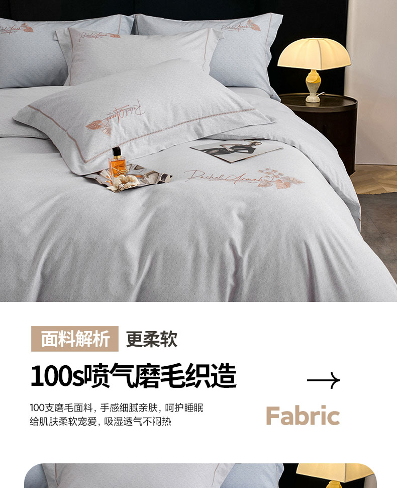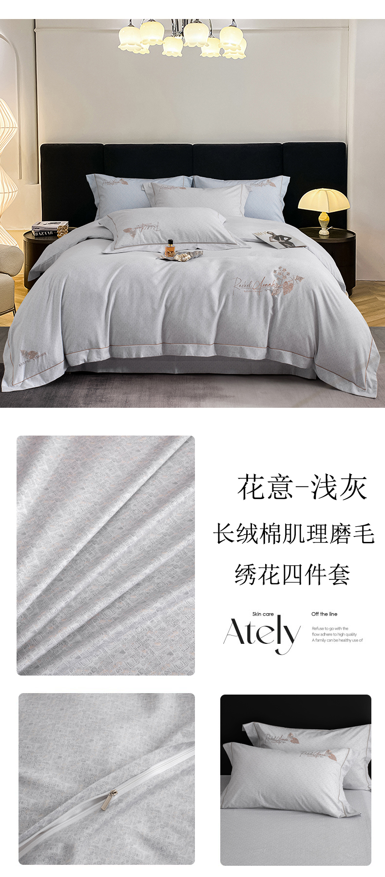 商品名称:蒂爵 全棉纯棉长绒棉肌理纹刺绣磨毛四件套-花意 花意-浅灰