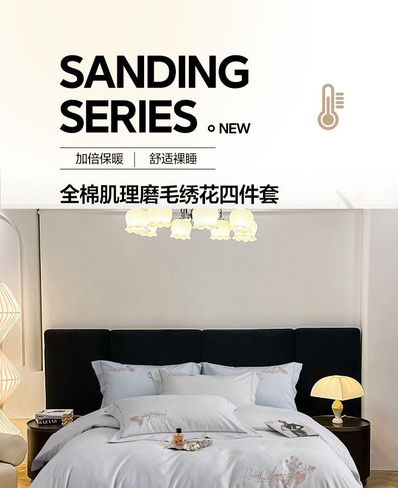 (总)蒂爵 2025新款居家长绒棉提花四件套克里斯汀系列,高级灰,天空蓝,香槟金,樱花粉