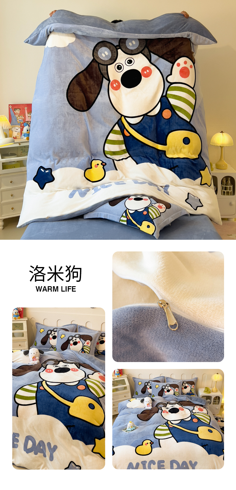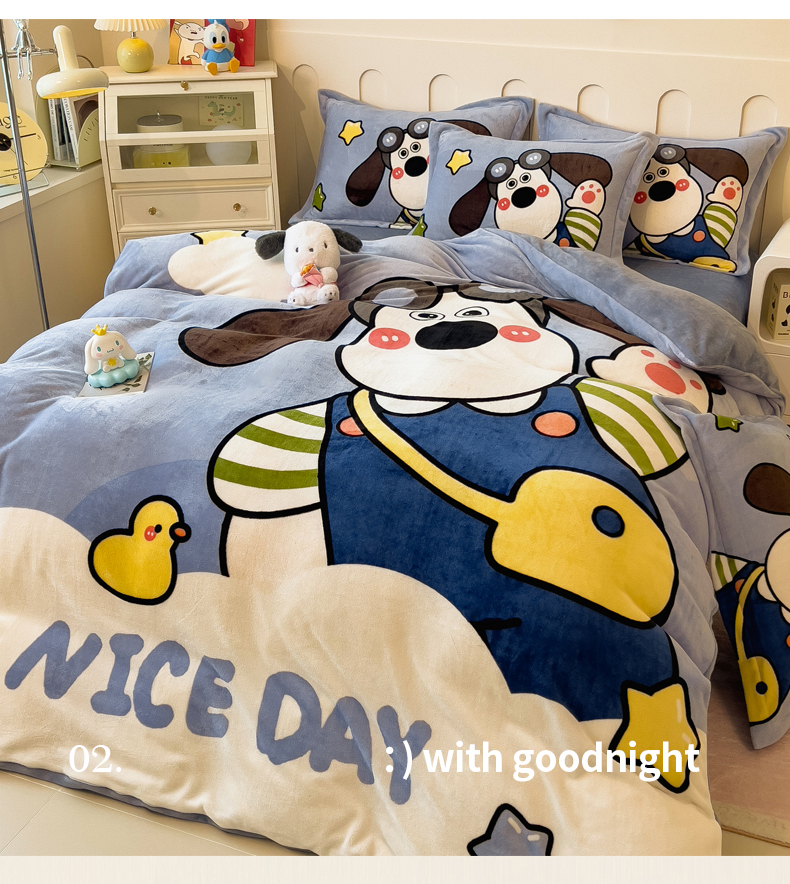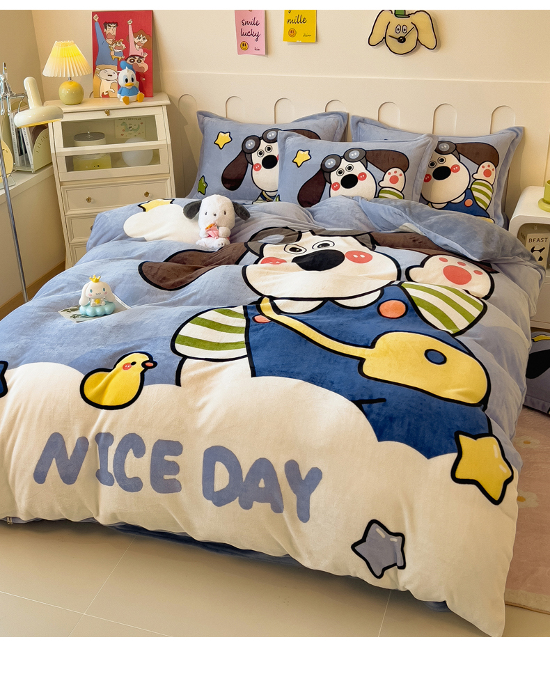 商品名称:丝羽坊 2024新款大版卡通印花牛奶绒四件套 洛米狗