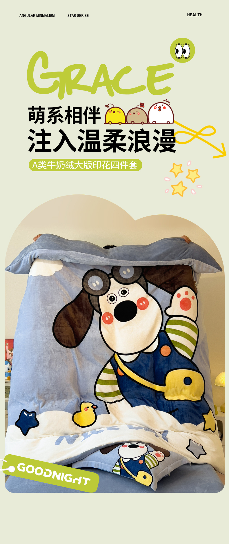 (总)丝羽坊 2025新款A类潮款加厚牛奶绒四件套,软萌宝贝,奶芙猫咪,蓝调汪汪,萌趣玩偶,灰调萌犬,抱抱熊,彩色蝴蝶结,粉粉喵窝,花裙女孩,紫色喵影