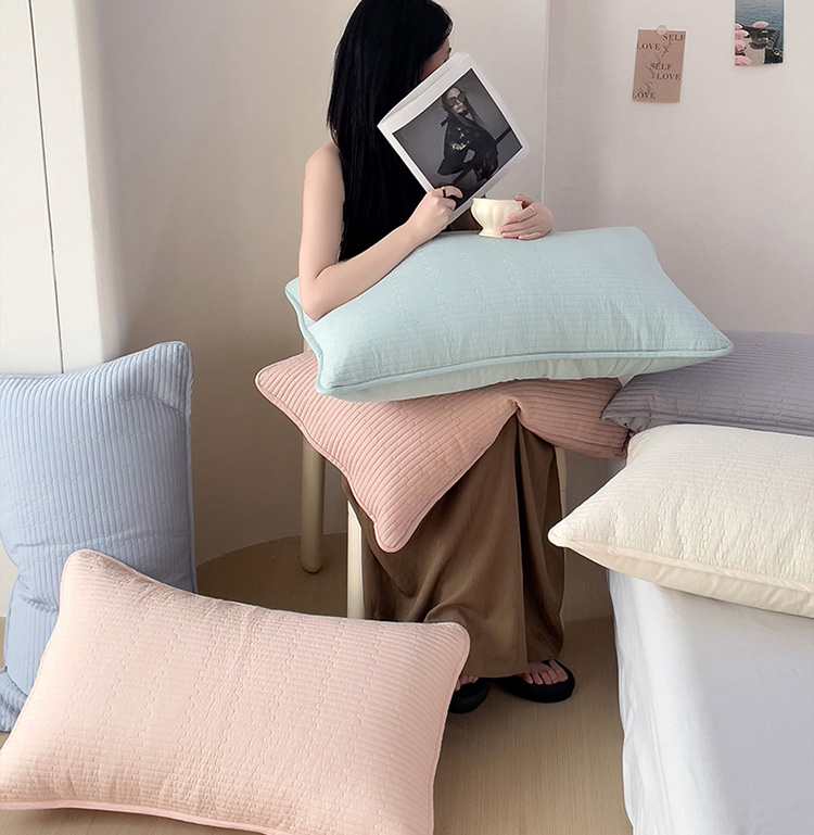 漫时光 2025新款纯色夹棉枕套 卡其色