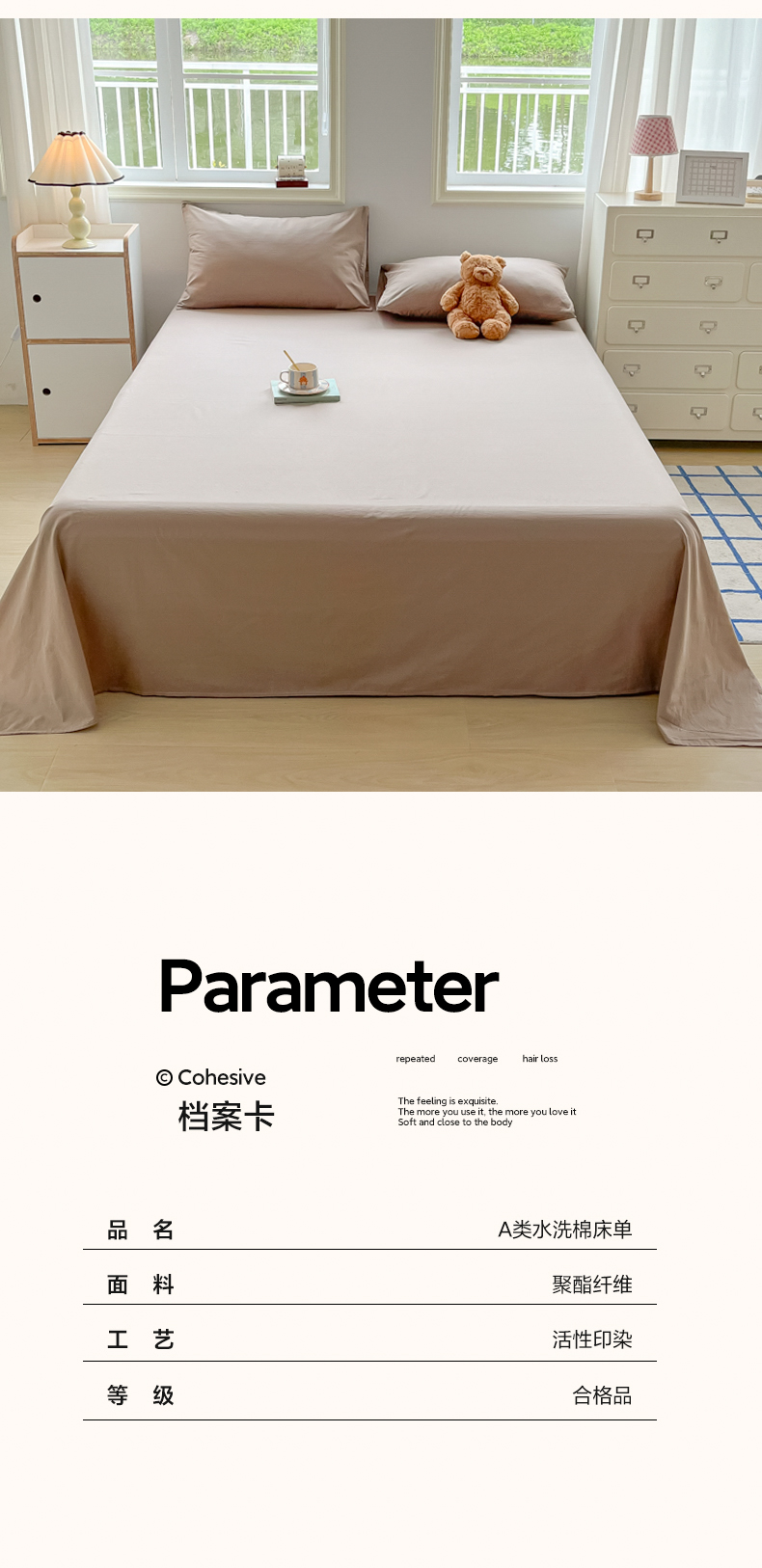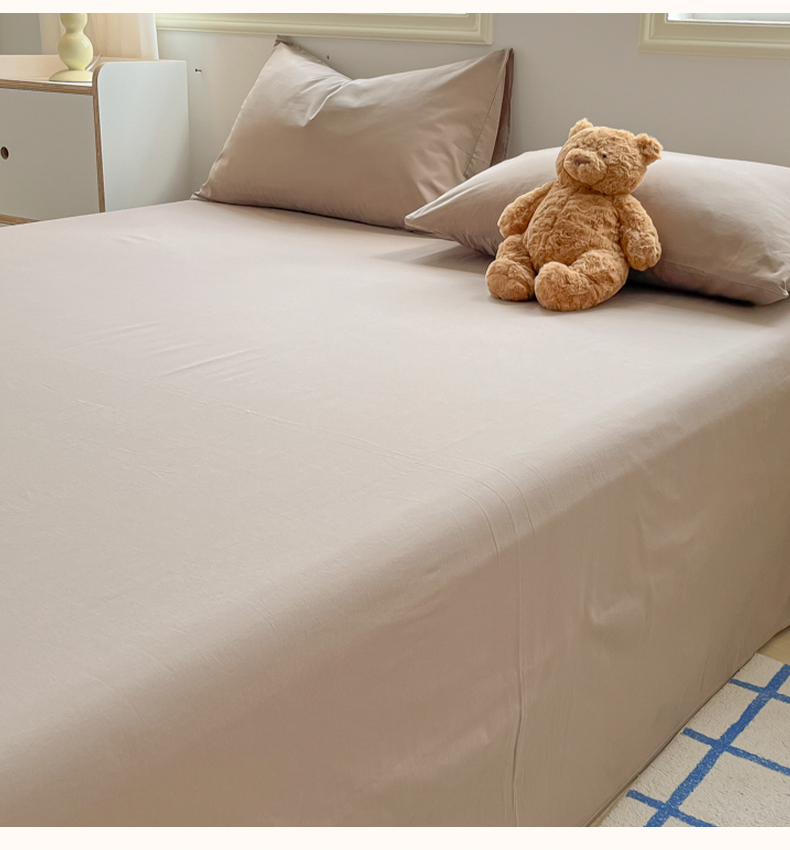 韩巢家纺 2024新款简约格子纯色A类水洗棉床单枕套三件套 A类卡其-床单