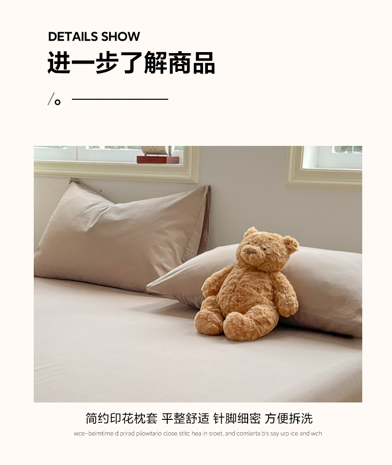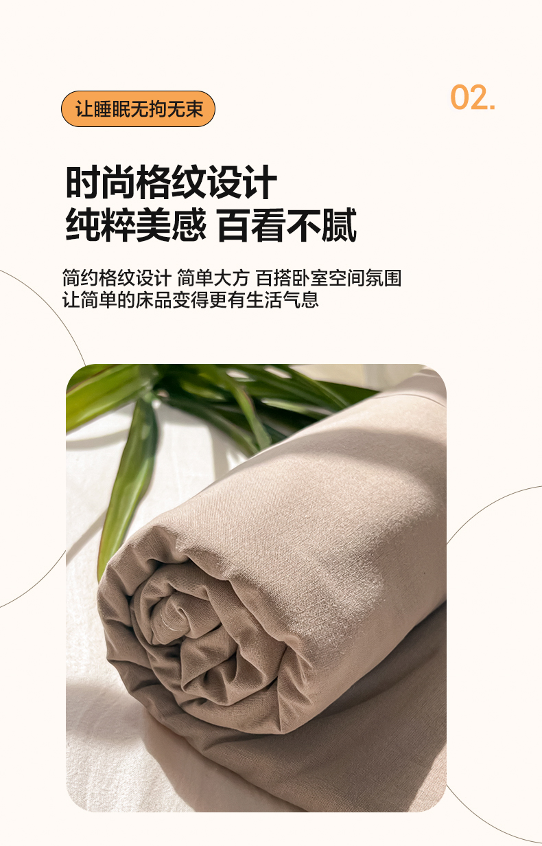 商品名称:韩巢家纺 2024新款简约格子纯色A类水洗棉床单枕套三件套 A类卡其-床单
