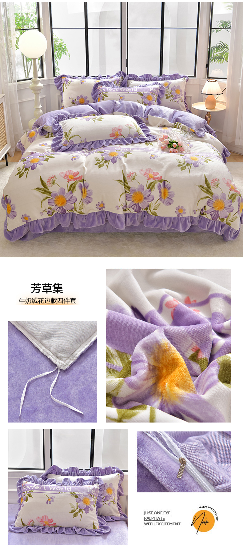 妮恒美 2024新款韩版印花牛奶绒四件套 芳草集