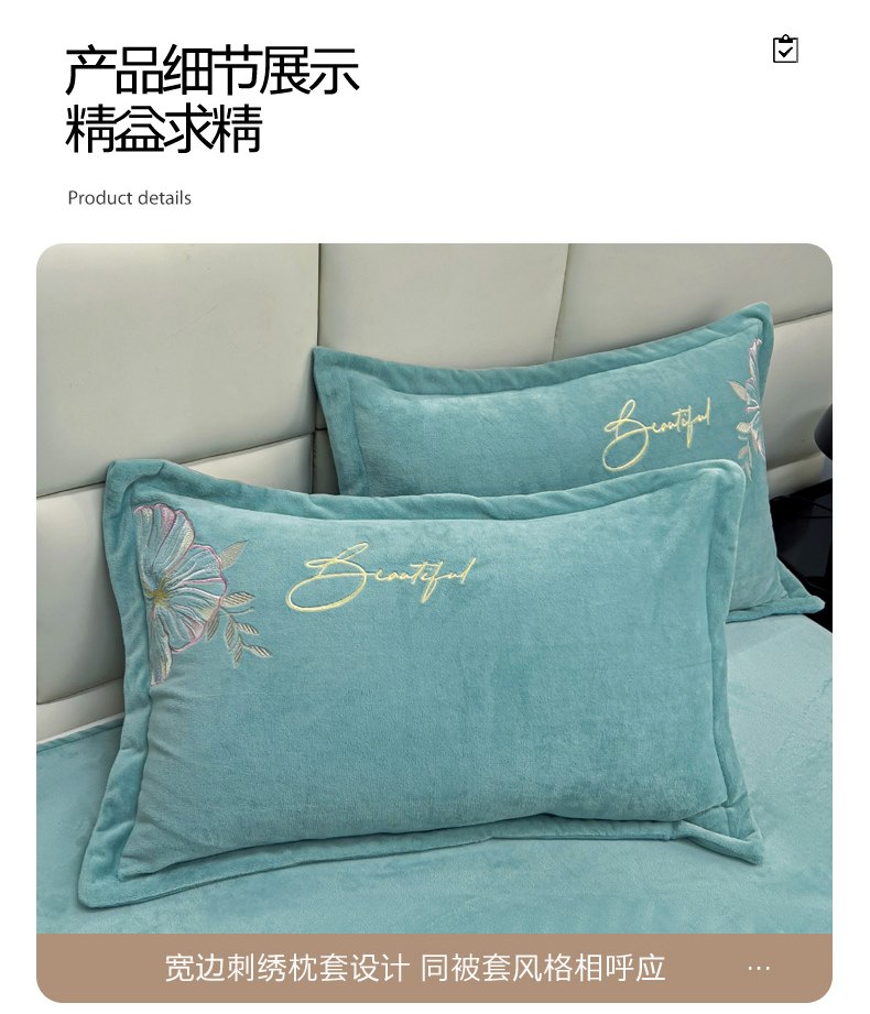商品名称:星尚家纺 2024新款全消光230g牛奶绒刺绣保暖四件套-花漾 晨雾绿