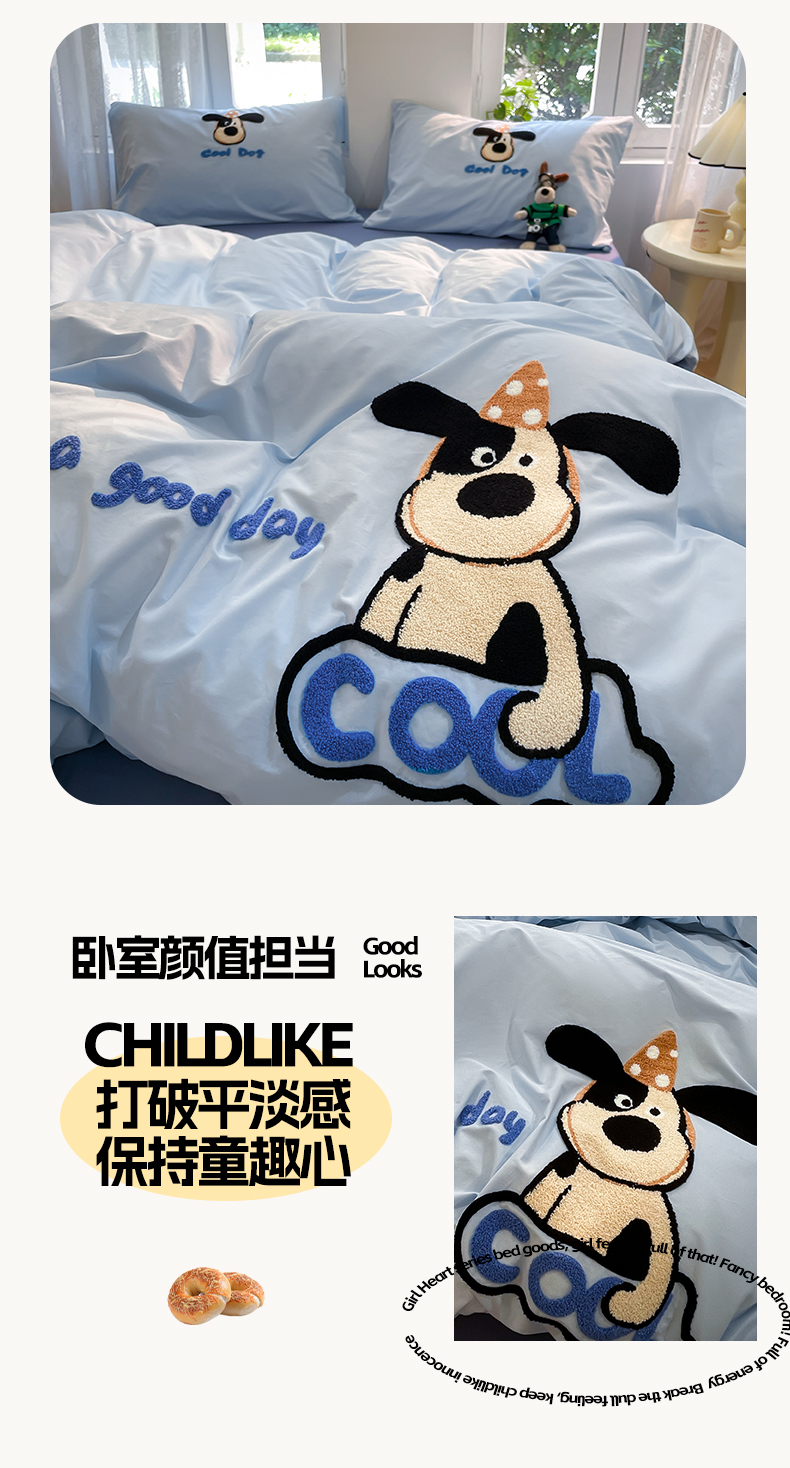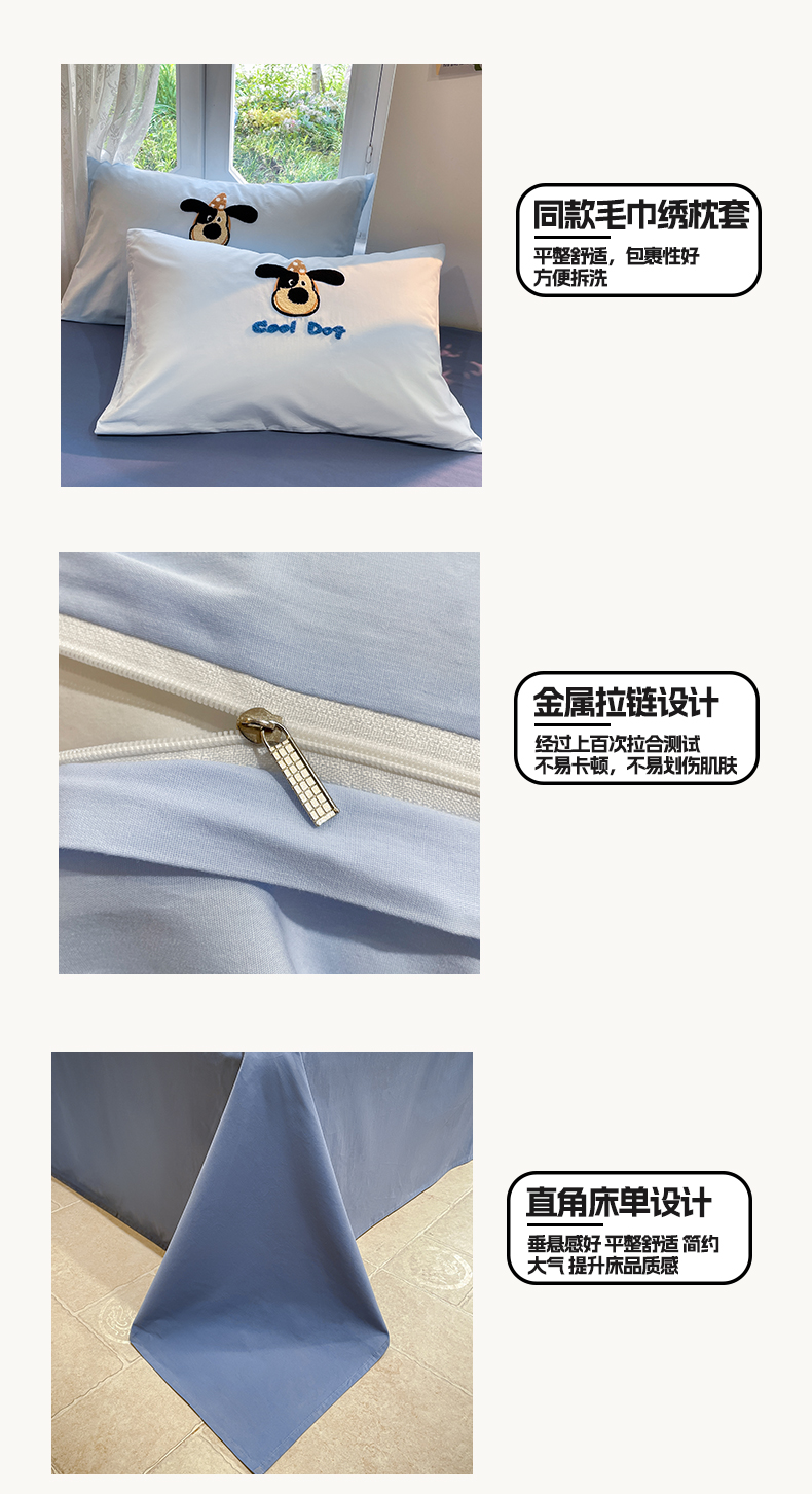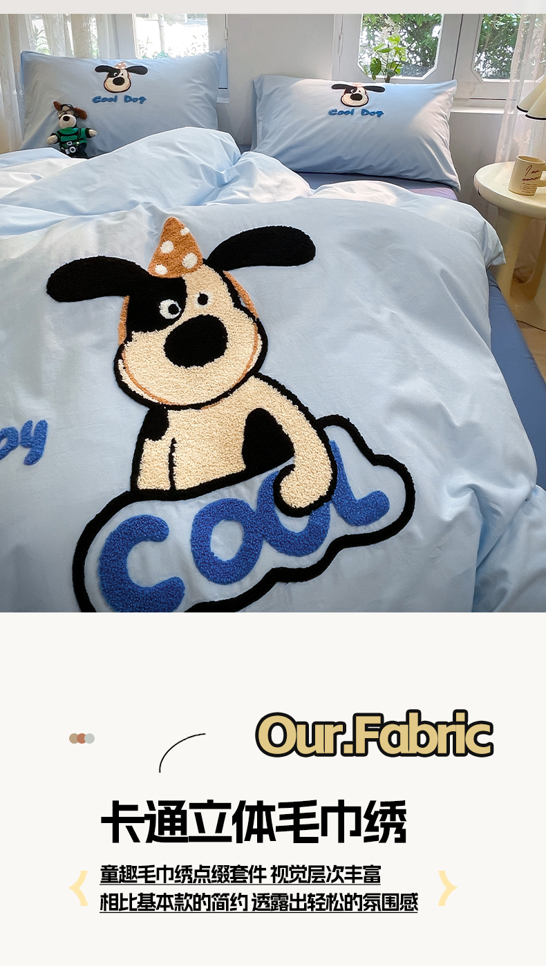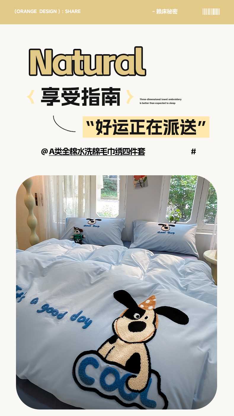 商品名称:如一 2024新款A类全棉水洗棉毛巾绣四件套 滑板狗