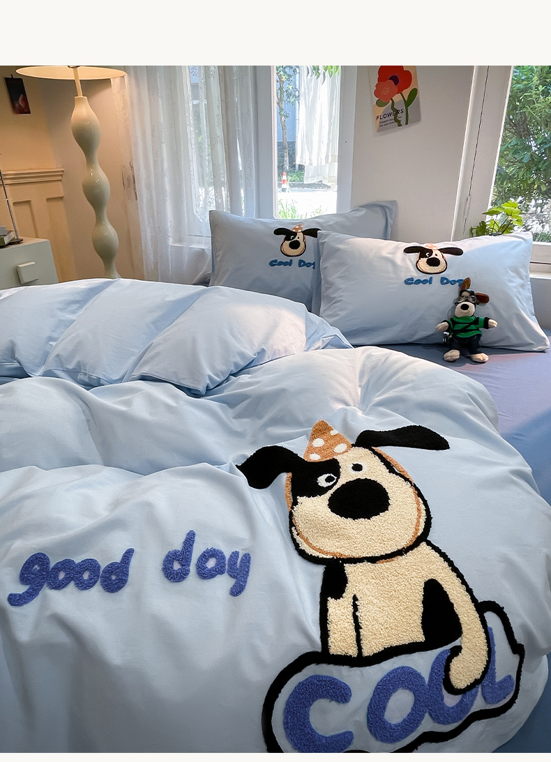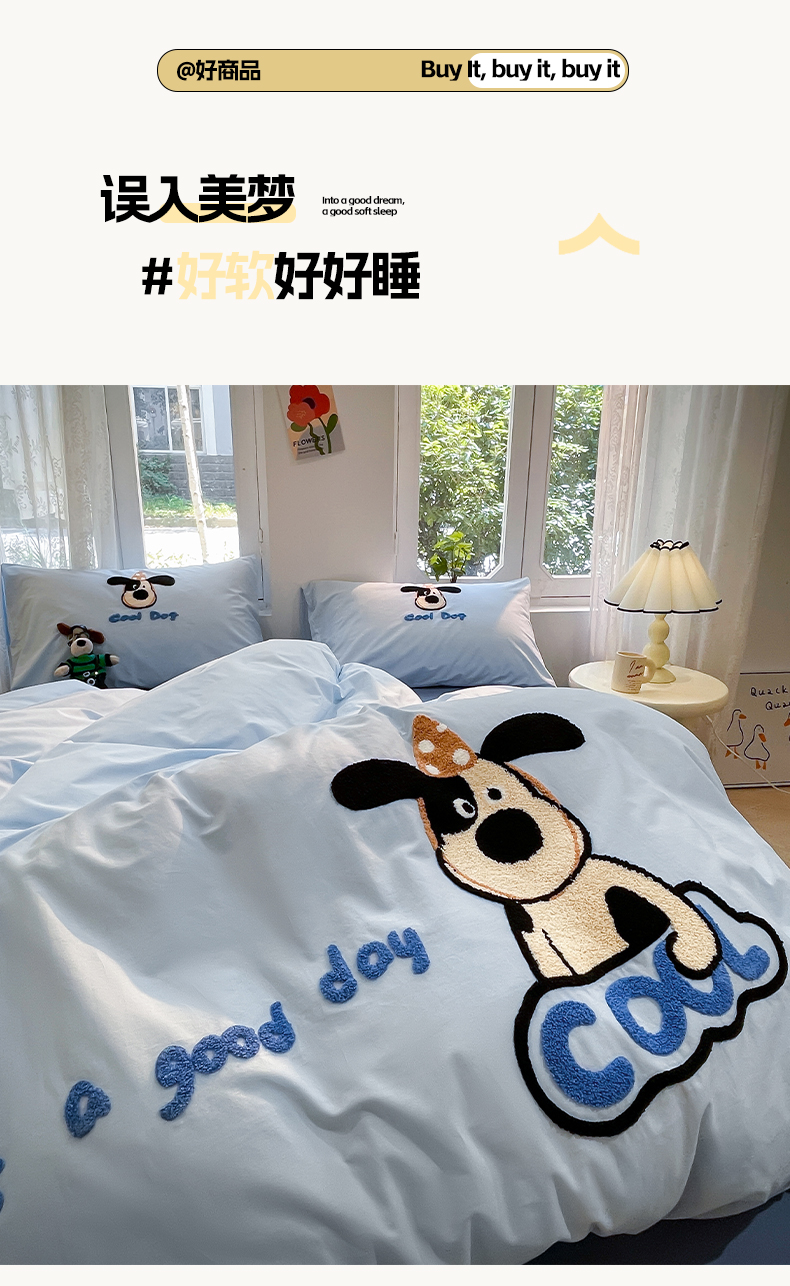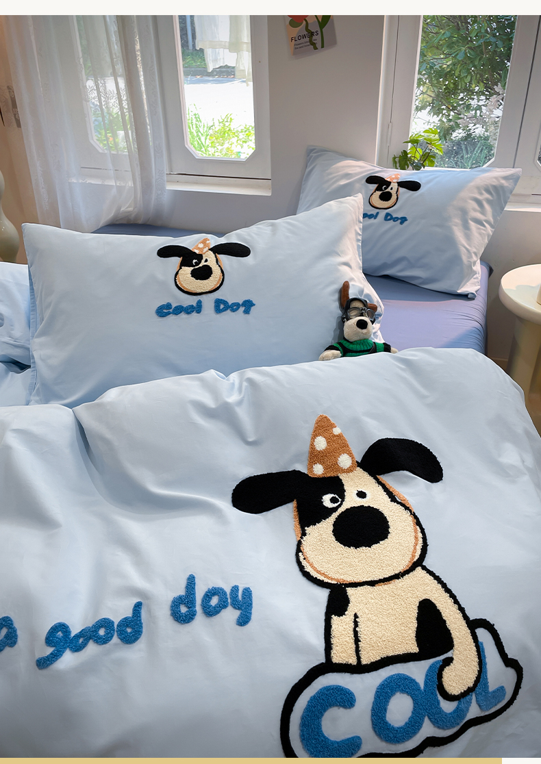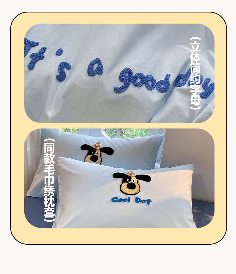 商品名称:如一 2024新款A类全棉水洗棉毛巾绣四件套 滑板狗