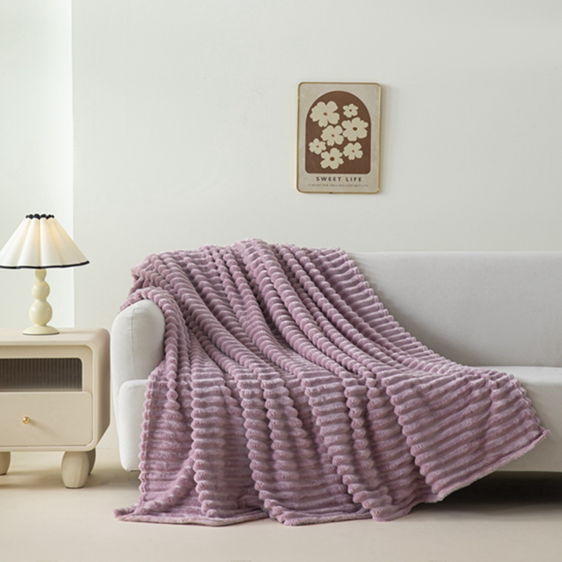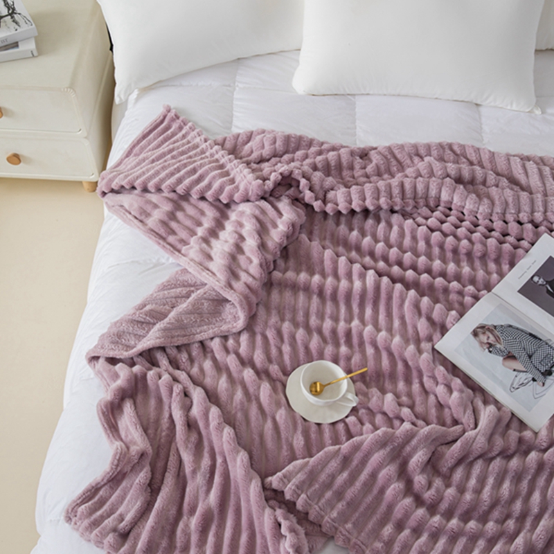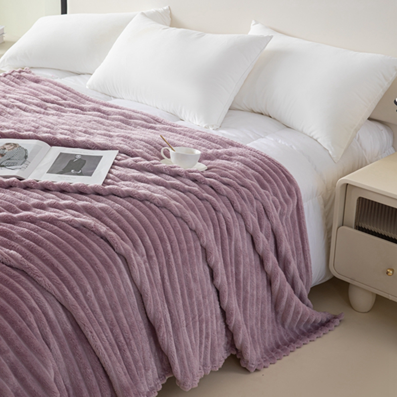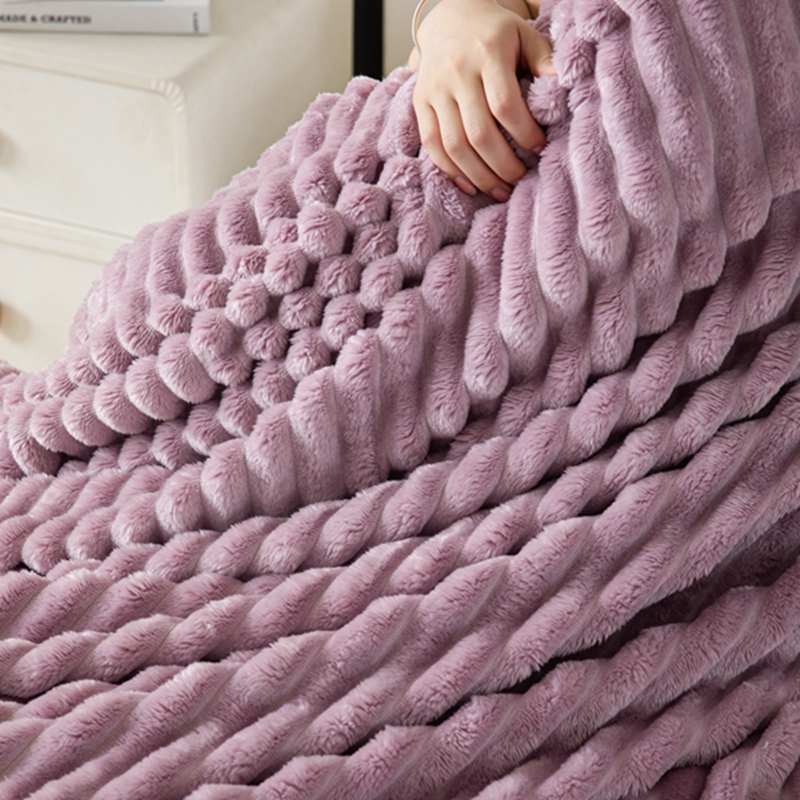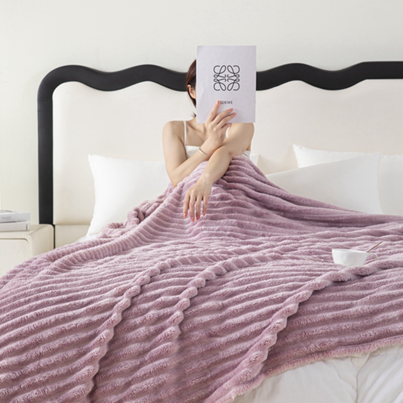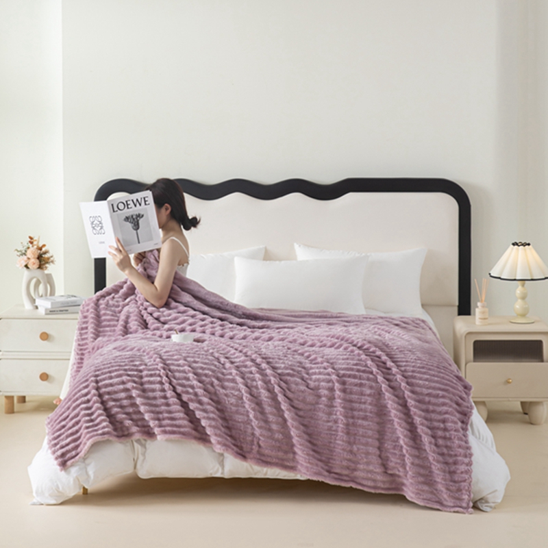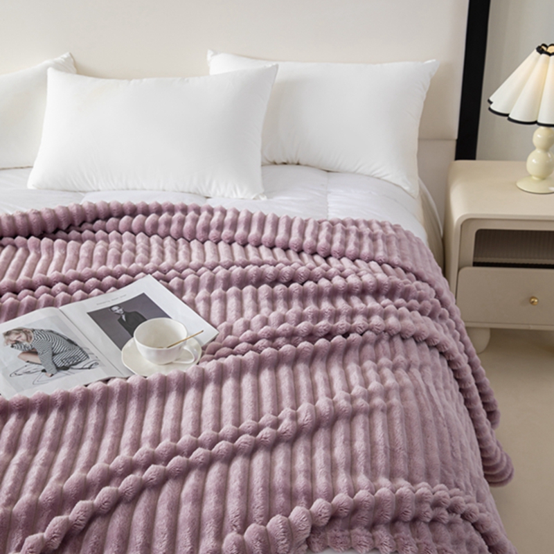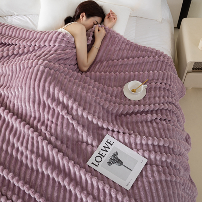 商品名称:锦禾穗 2024新款兔毛绒多功能毛毯高克重抽条纯色加宽加厚双面绒 兔毛紫色