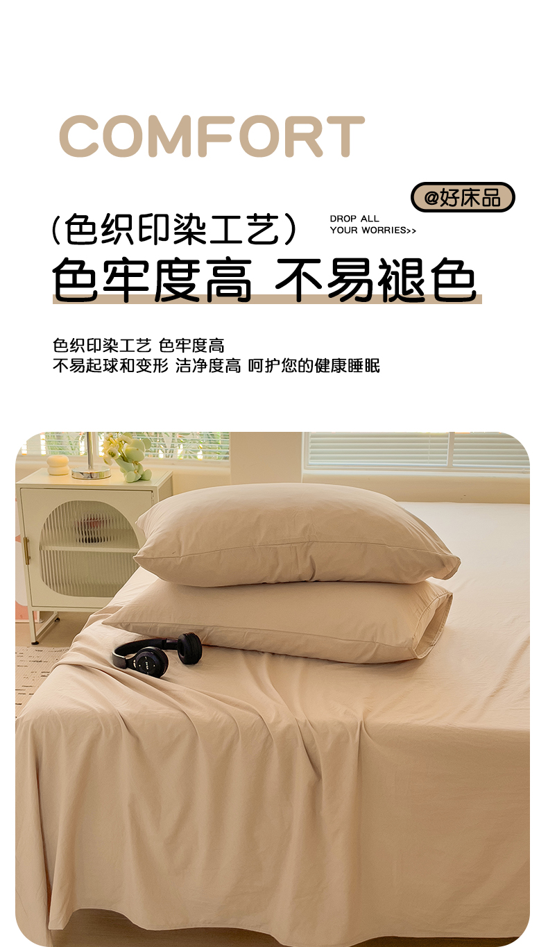 商品名称:优选良品 2025新款母婴级水洗棉床单三件套 水洗棉-奶杏