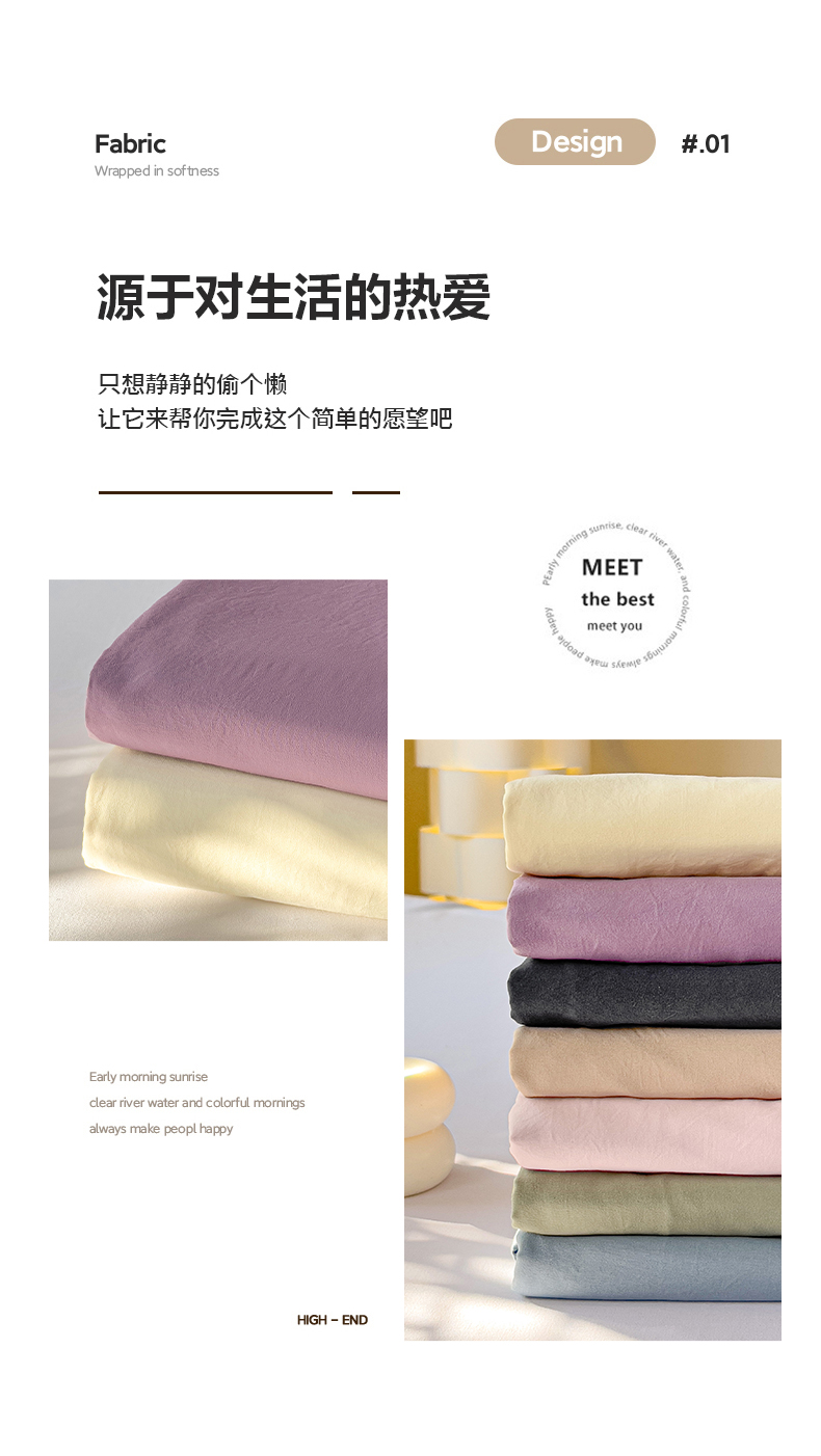 优选良品 2025新款韩版轻奢皱皱纱水洗棉拼色床单床笠四件套三件套-芋泥紫,芋泥紫