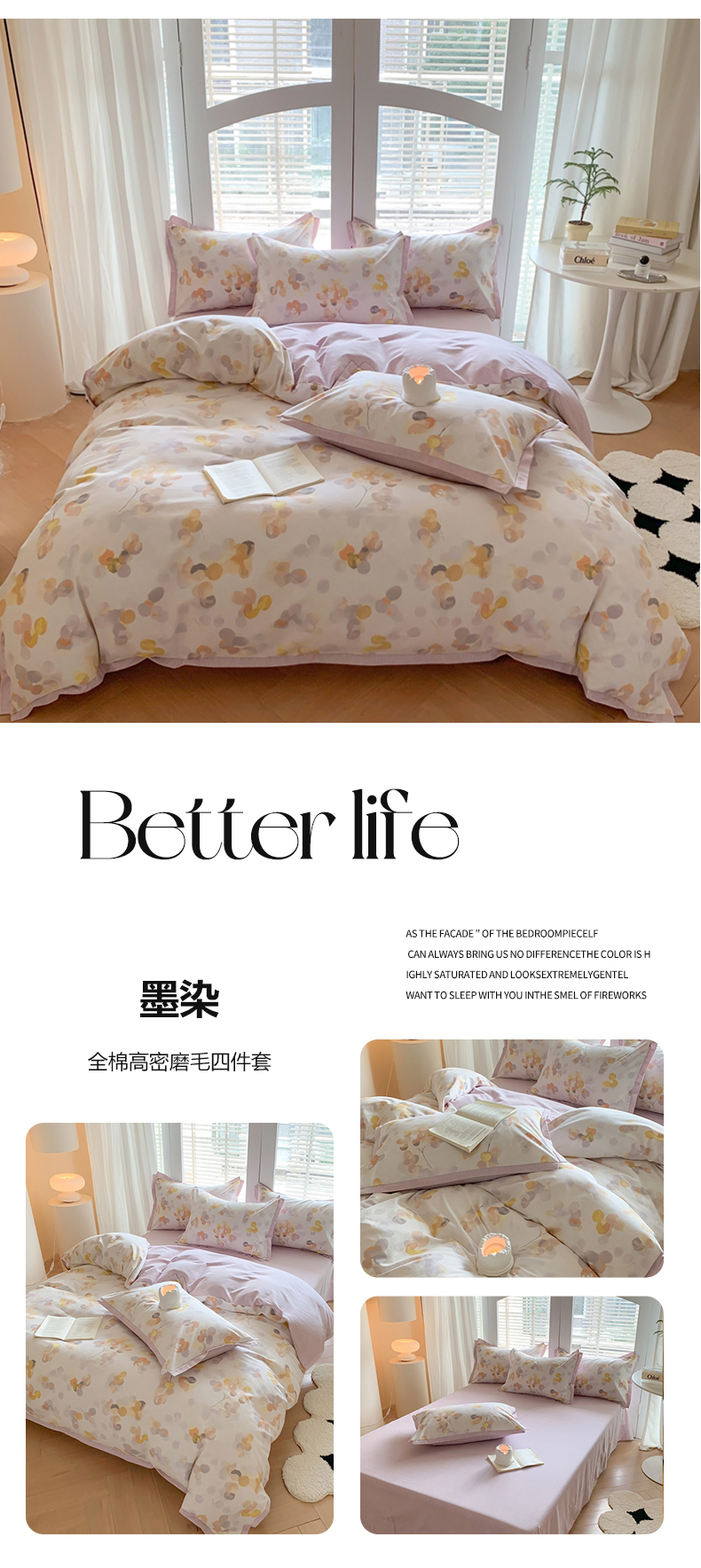 当前位置: 91家纺网 > 商品网购 > 床品套件 > 四件套 > 全棉普通四件套 > 2024新款全棉磨毛印花系列四件套 墨染