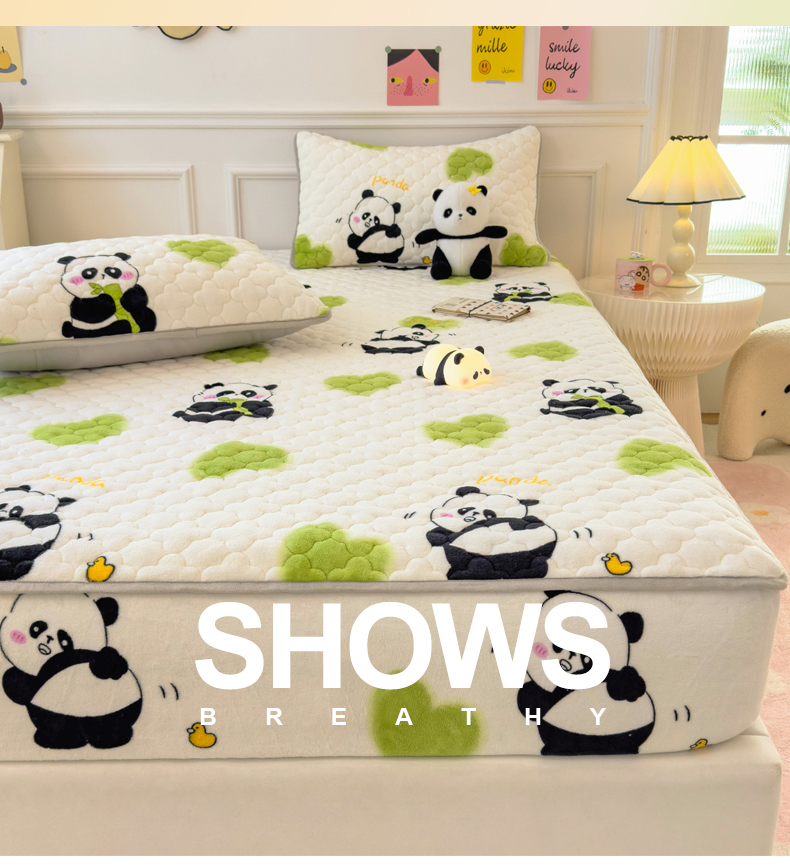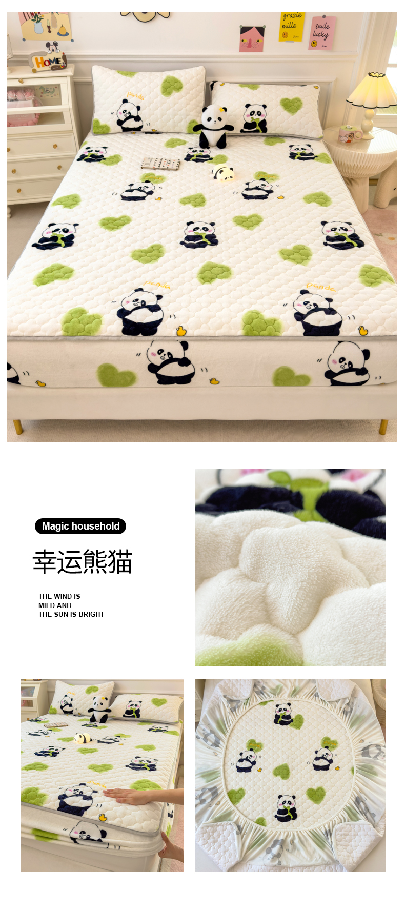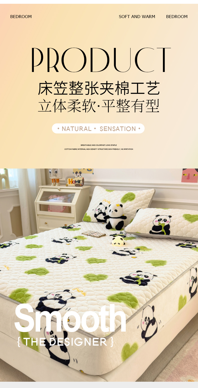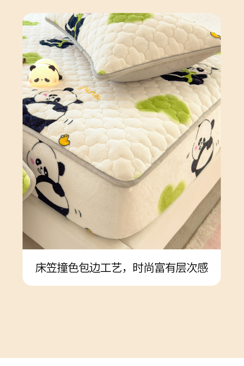 丝羽坊 2024新款A类加厚牛奶绒夹棉床笠 幸运熊猫