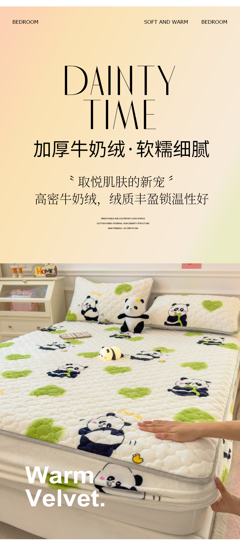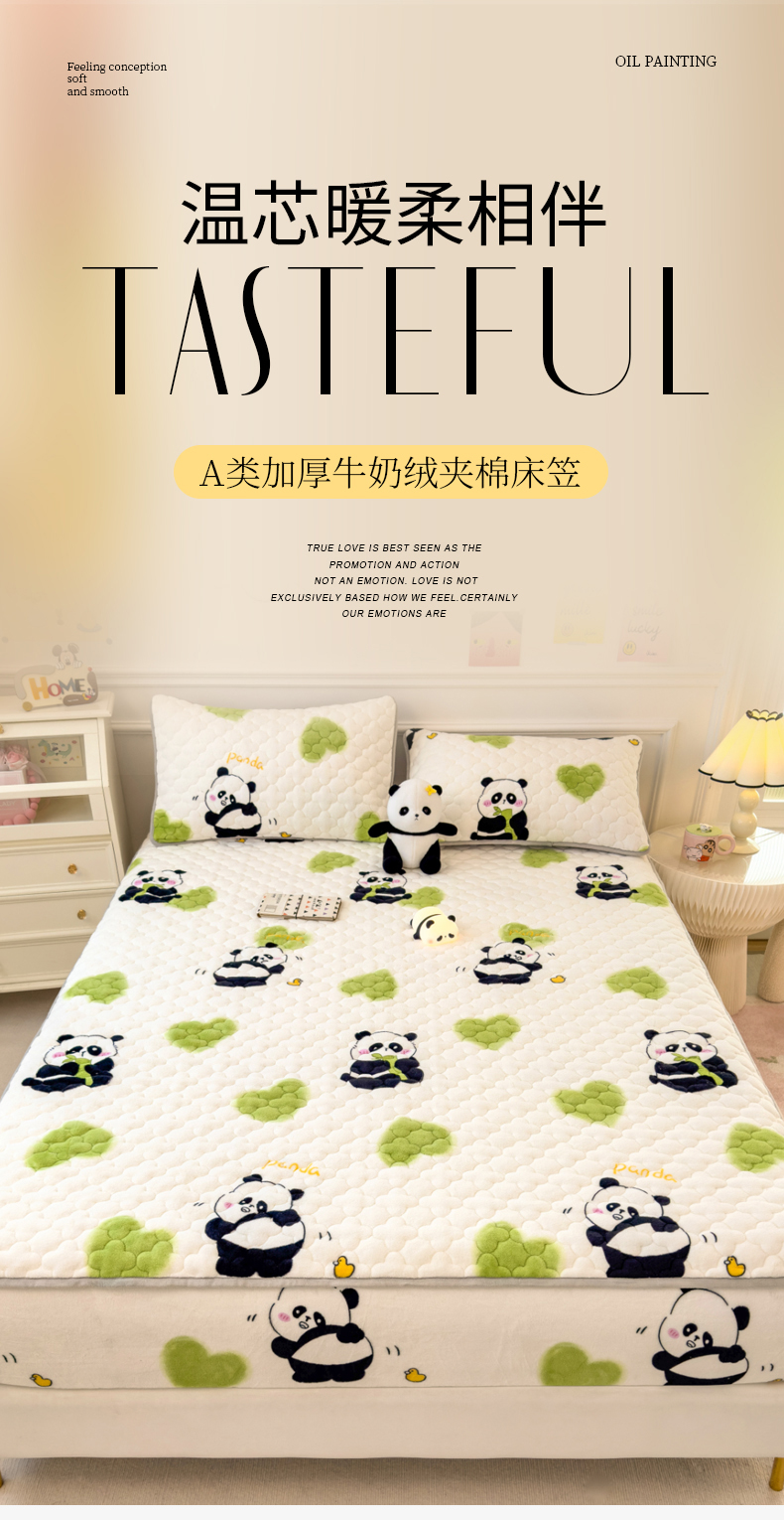 • 91家纺网 家纺一手货源 找家纺 丝羽坊 2024新款A类加厚牛奶绒夹棉床笠 幸运熊猫