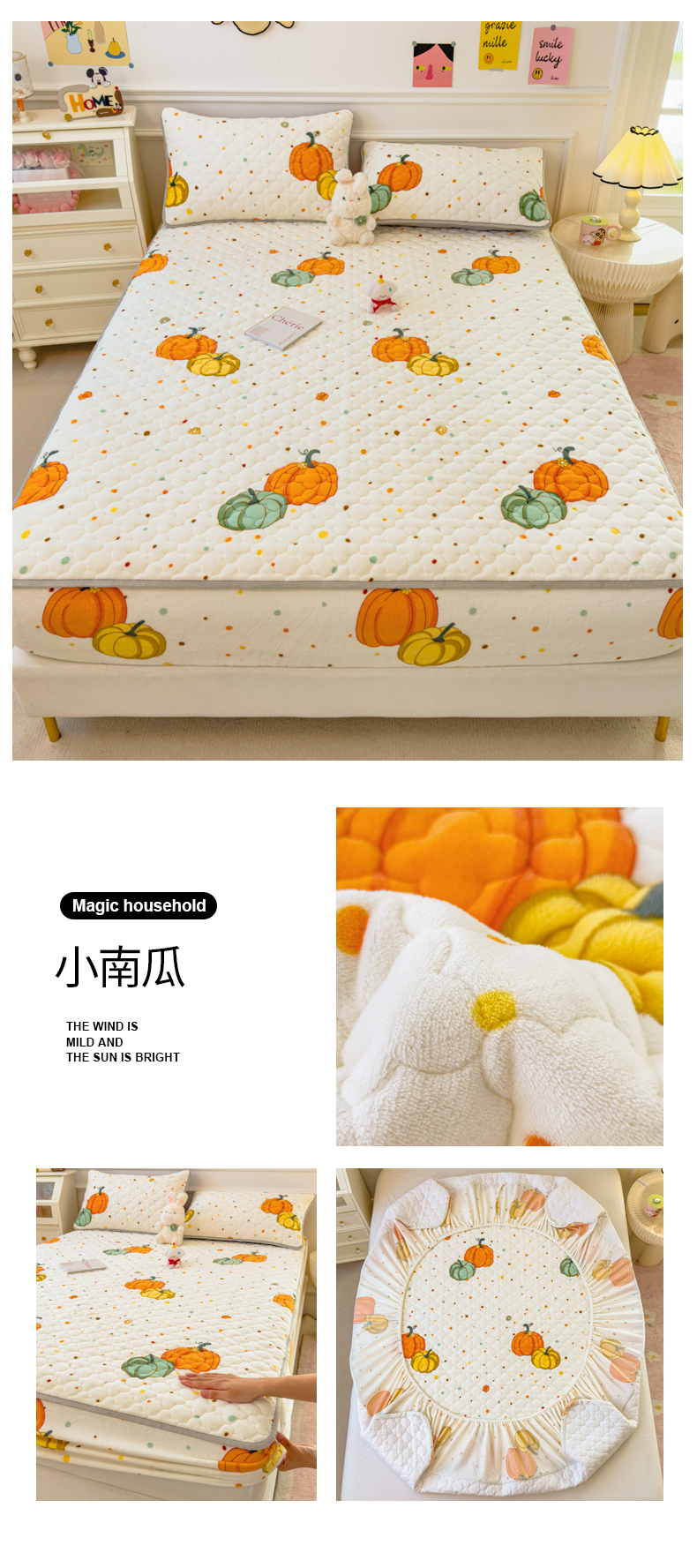 • 91家纺网 家纺一手货源 找家纺 丝羽坊 2024新款A类加厚牛奶绒夹棉床笠 小南瓜