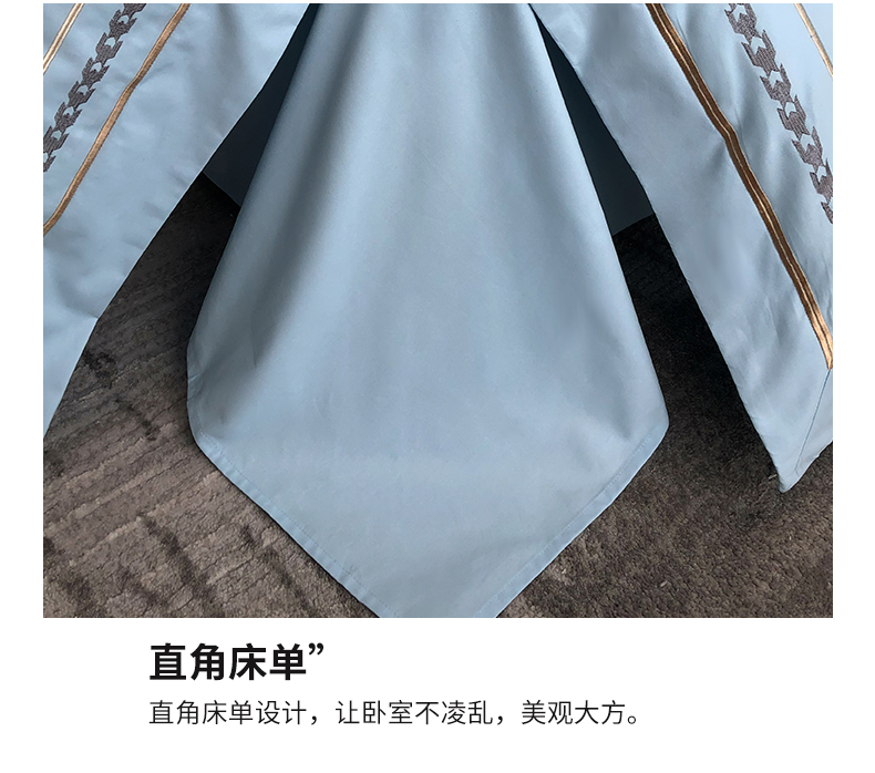 商品名称:家居1号家纺 2024新款加厚全棉磨毛宽边刺绣拼角四件套-维多利 维多利 天空蓝