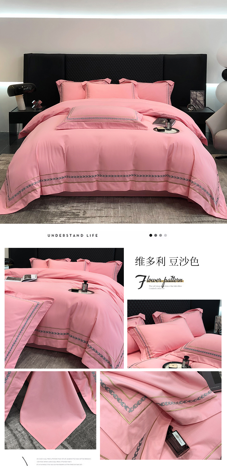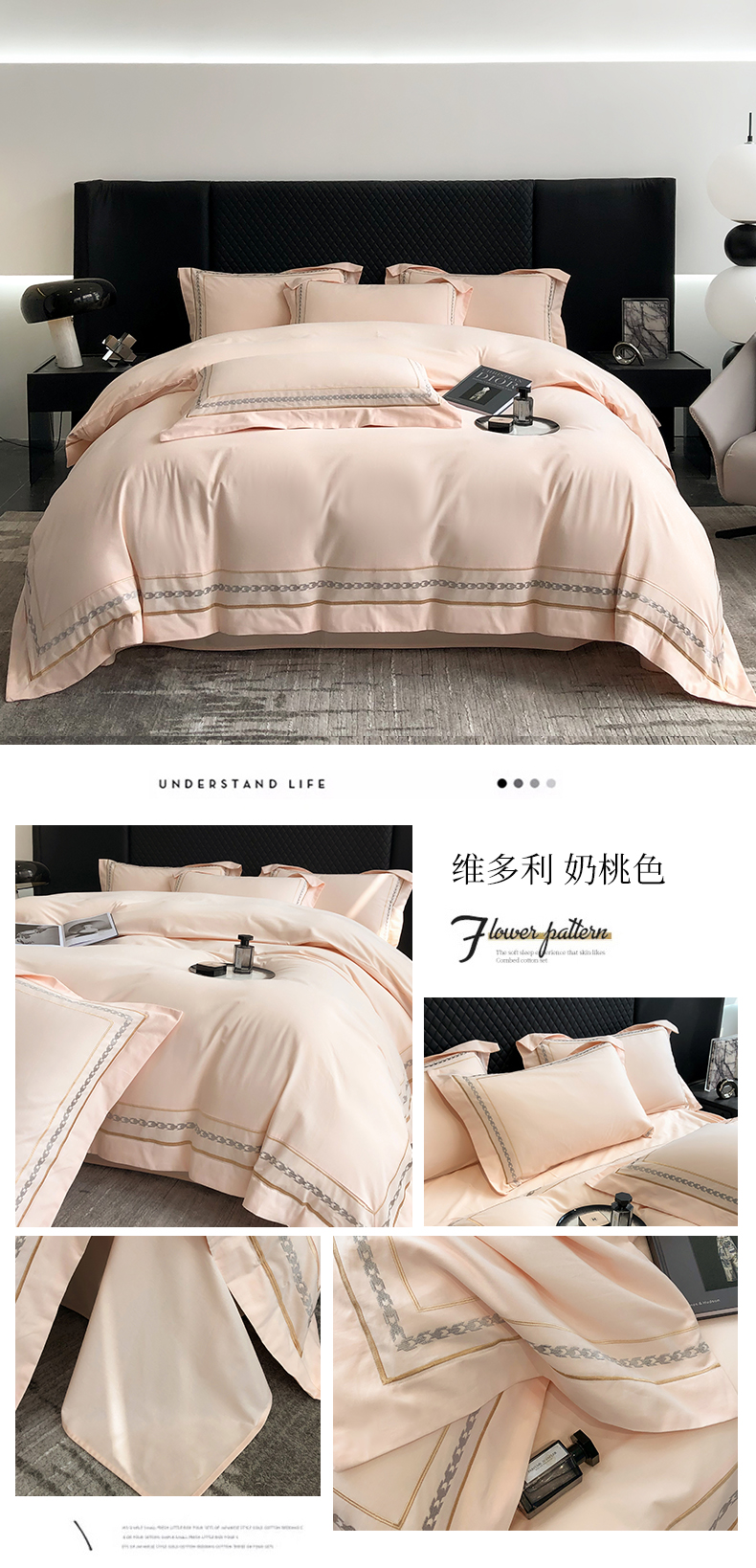 (总)家居1号2025新款40s133*76全棉纯棉千鸟格刺绣大拼角长绒棉四件套-维也纳,维也纳-粉豆沙,维也纳-绅士灰,维也纳-水兰,维也纳-太空灰,维也纳-香槟金,维也纳-象牙白