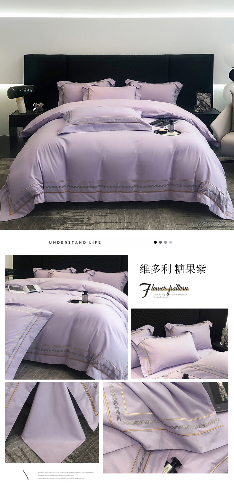 (总)家居1号家纺 2025新款长绒棉边条刺绣四件套威尼斯系列,威尼斯-高级灰,威尼斯-蝴蝶粉,威尼斯-香槟金,威尼斯-香芋紫,威尼斯-象牙白,威尼斯-月光蓝