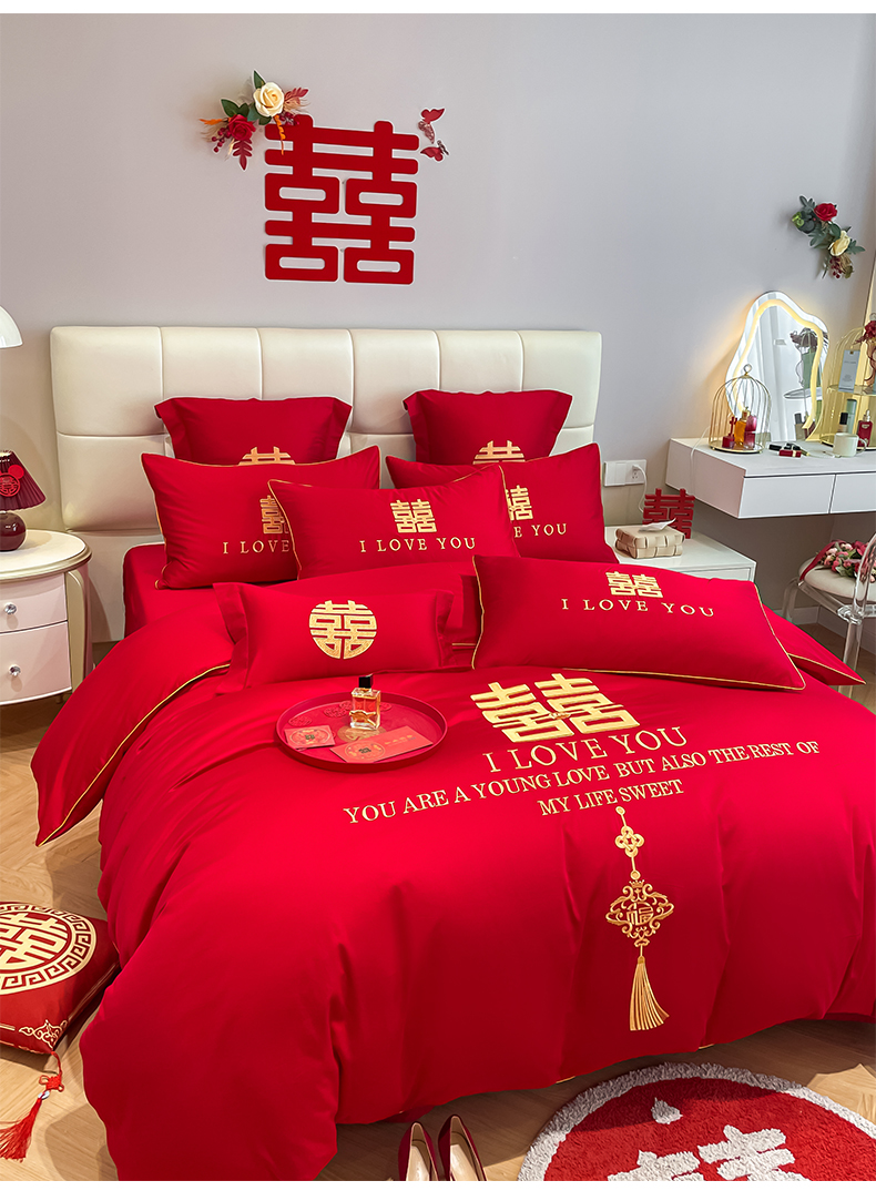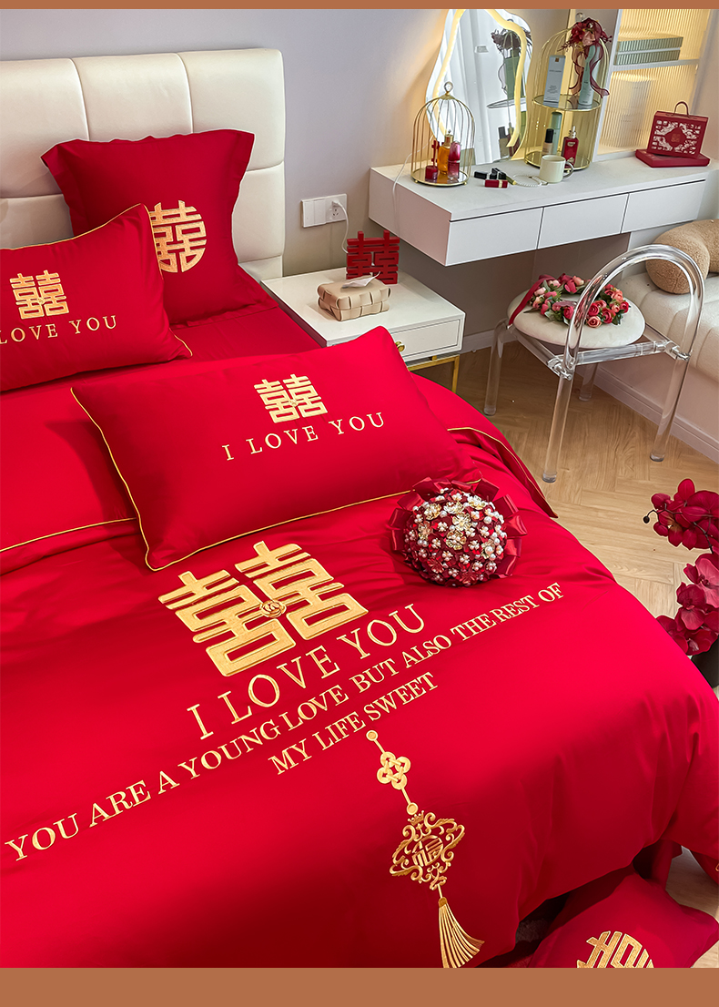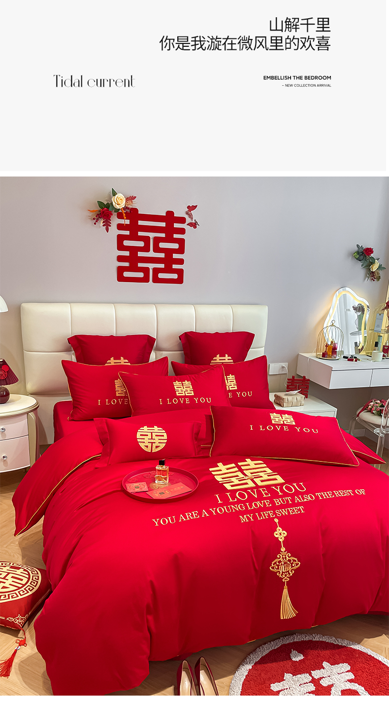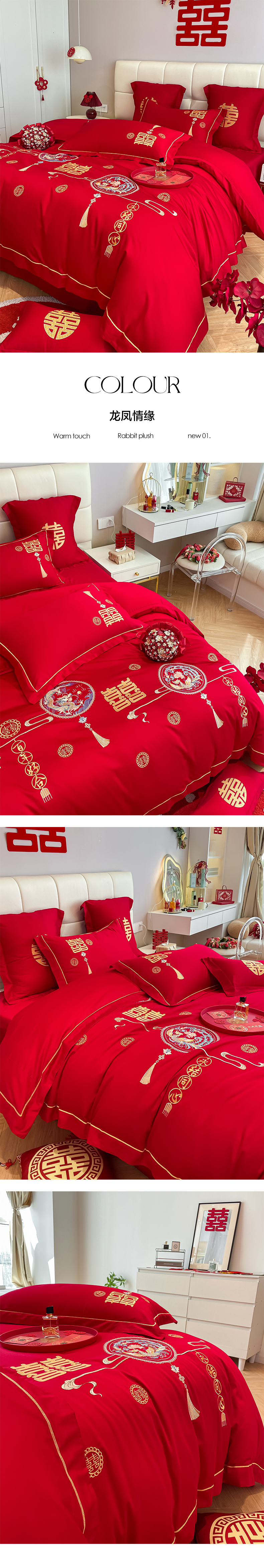 (总)欧乐蒂 2025新款婚庆款牛奶绒刺绣系列四件套-爱相随,爱相随-喜红,爱相随-金