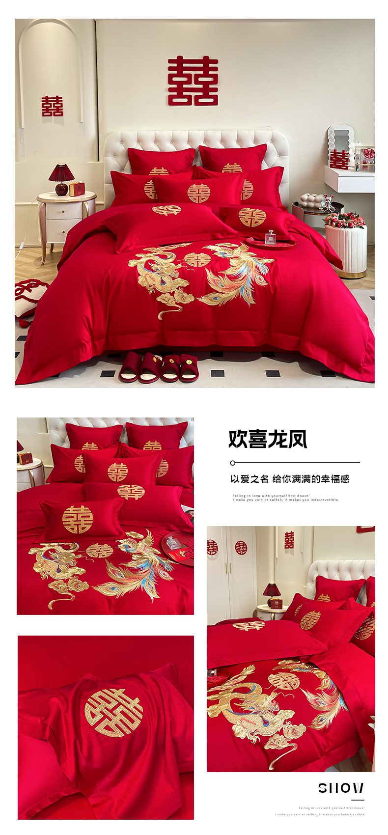 (总)欧乐蒂 2025新款设计师原创亲肤棉婚庆四件套,云喜东方,双喜临门,喜乐,喜事连连,爱恋,玫瑰爱恋,花开富贵,金枝玉叶,锦绣佳缘,龙姿风采