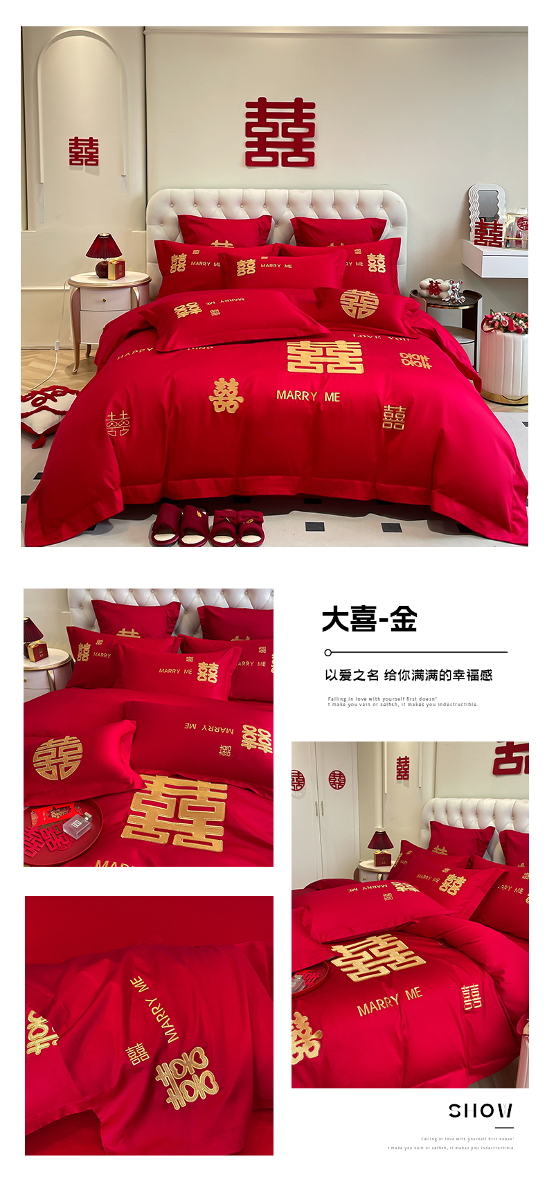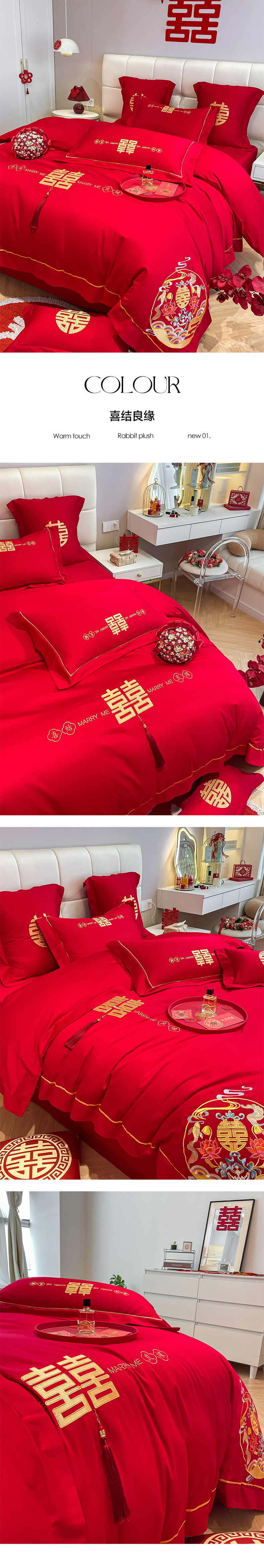 (总)欧乐蒂 2025新款婚庆款牛奶绒刺绣系列四件套-爱相随,爱相随-喜红,爱相随-金