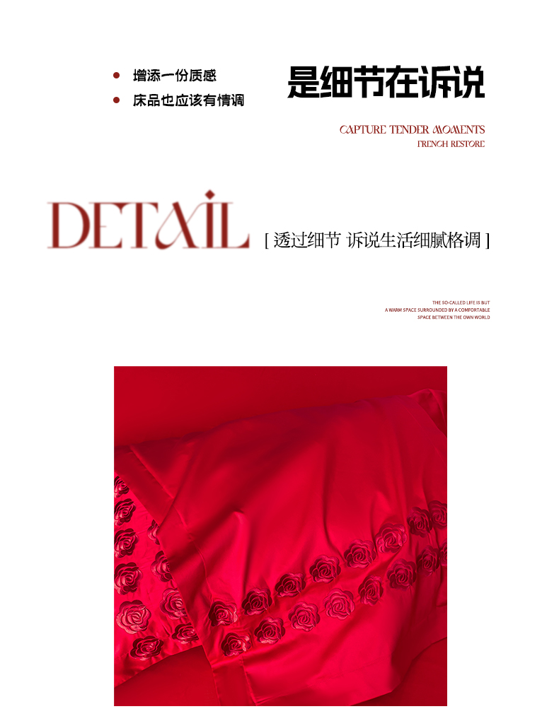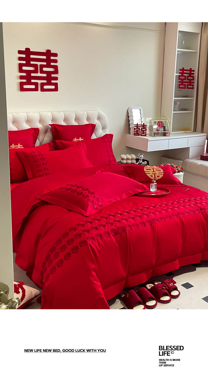 (总)欧乐蒂 2025新款亲肤棉刺绣花边婚庆四件套-浪漫花季,浪漫花季-红,浪漫花季-金