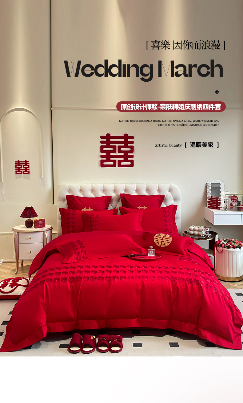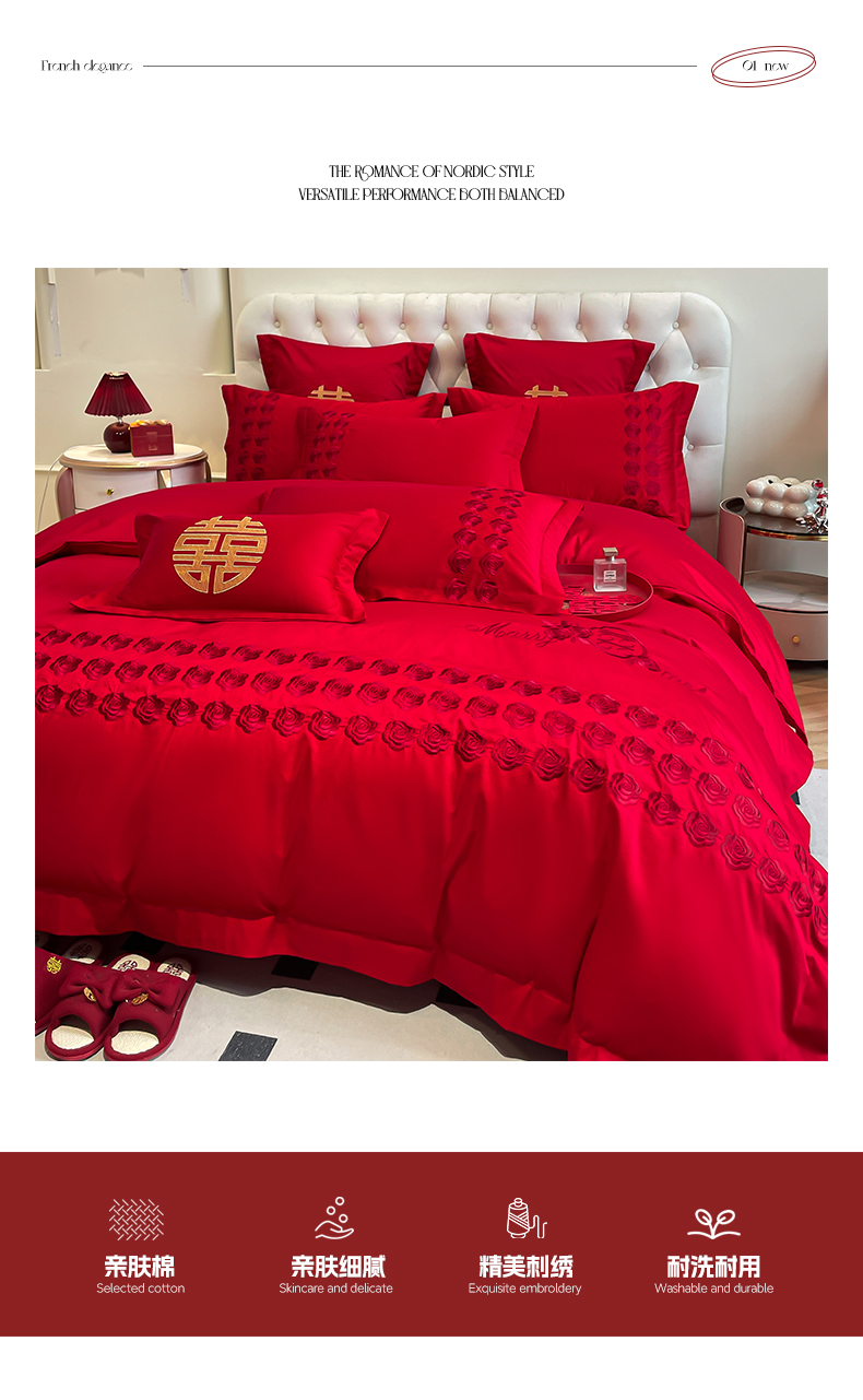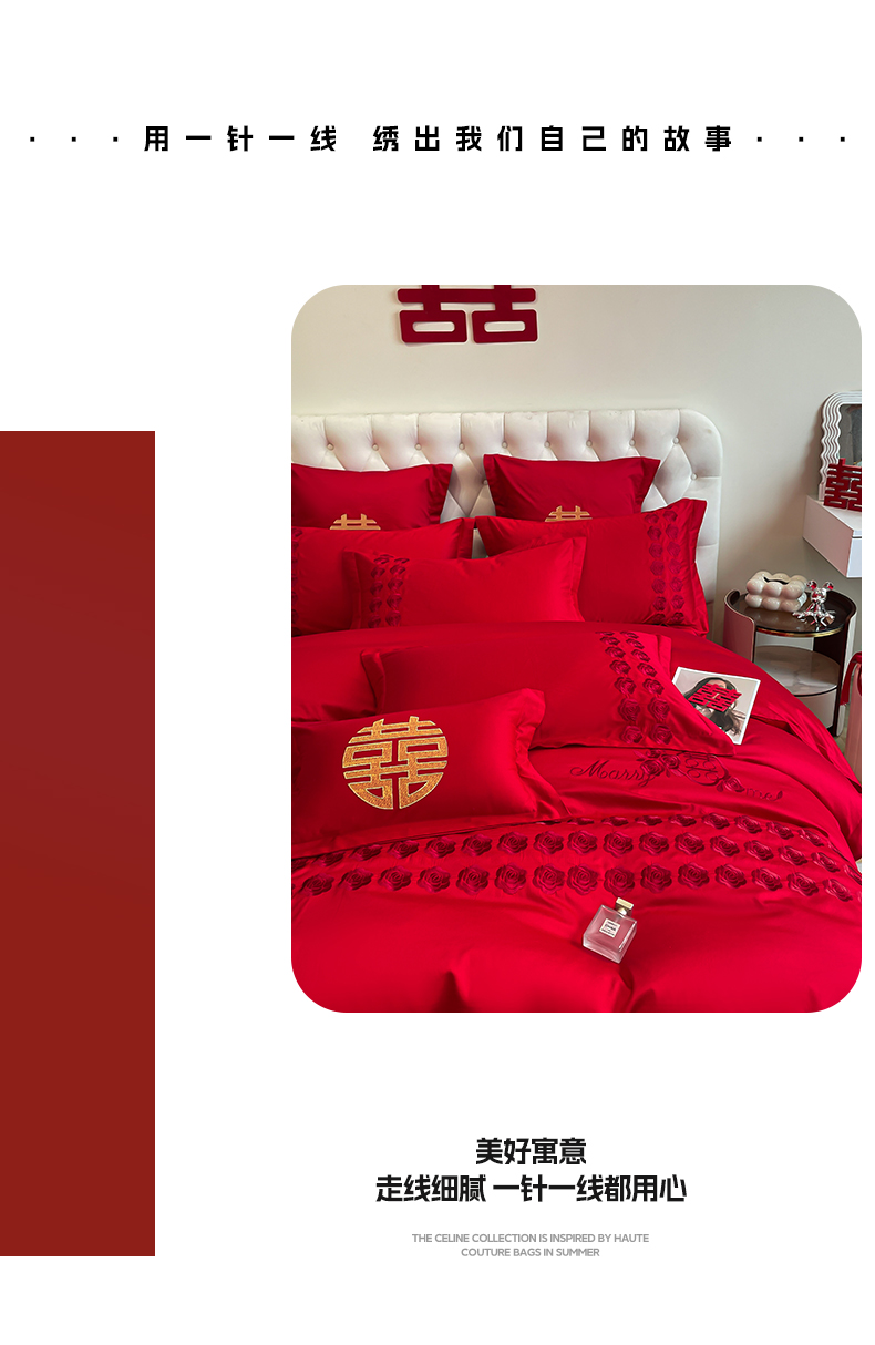 (总)欧乐蒂 2025新款全棉刺绣婚庆四件套,佳偶天成,龙凤和美,龙姿凤彩,玫瑰恋人,倾城之恋,双囍临门,甜蜜爱情,囍结良缘