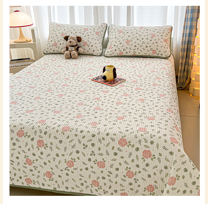 • 91家纺网 家纺一手货源 找家纺 茉夕家纺 2024新款跑量款纯棉单面棉高温水洗床盖 花涧澈