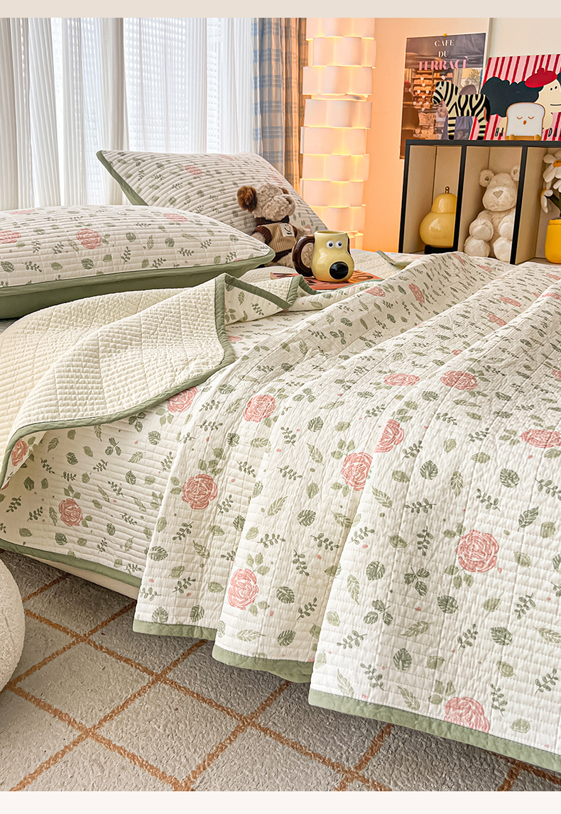 茉夕家纺 2024新款跑量款纯棉单面棉高温水洗床盖 花涧澈