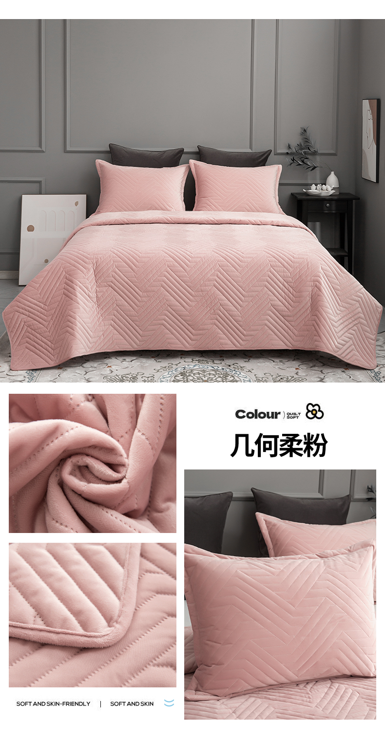 恩和家纺 2024新款水晶绒水洗棉压花几何款床盖 几何柔粉