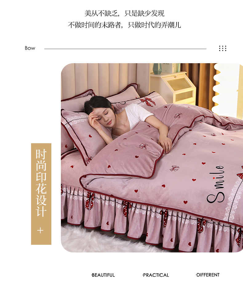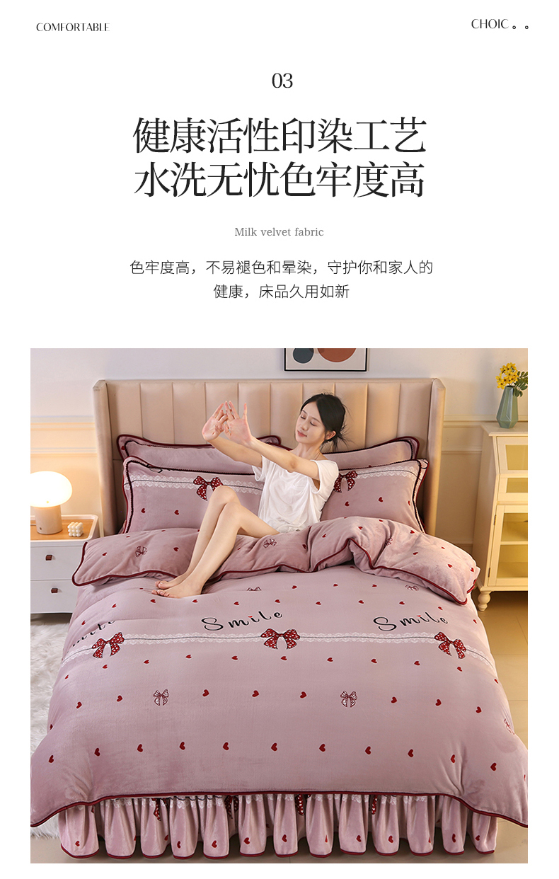 (总)橘姿 2025新款8-9斤床裙款牛奶绒四件套金貂绒法兰绒宝宝绒,荷塘月色,简约时尚,静若幽香,乐薇花园,鹿之恋,心相印,一鹿有你,时尚潮流,银杏叶语,爱恋粉,爱情花语,爱语,爱之依恋,百合情缘,发财树,富贵牡丹,花香怡人,花样情怀,欢乐兔,蓝大格,浪漫甜心,暖意,情人草灰,时尚小熊,相爱一生大红,心动萌宝,幸运树,叶叶枫情,一叶倾心,在一起