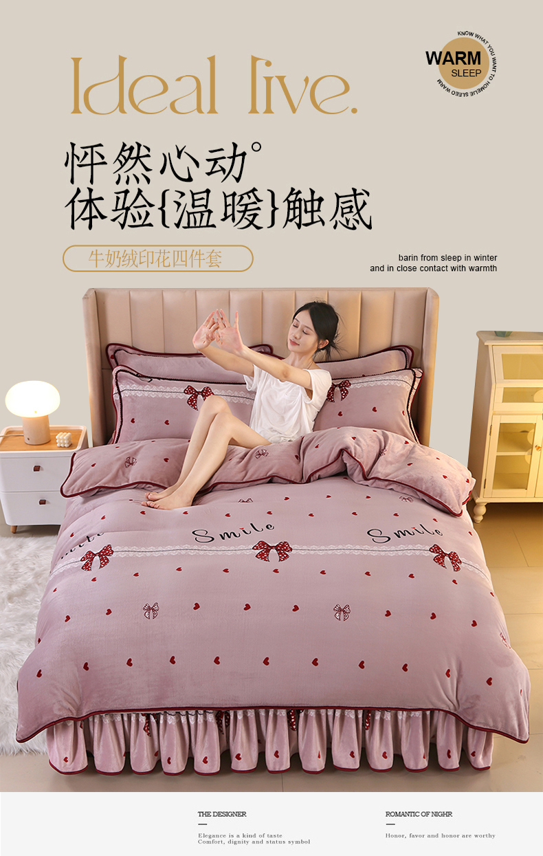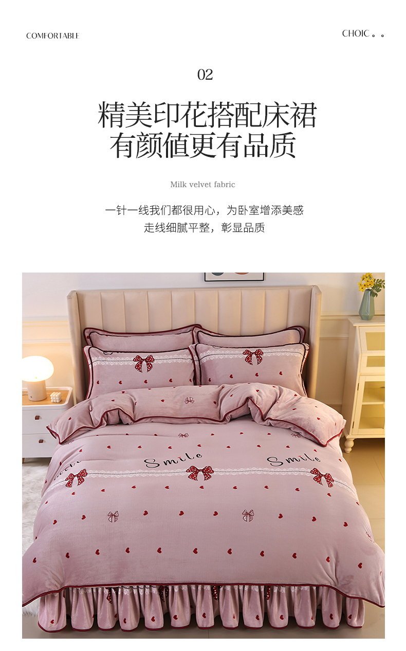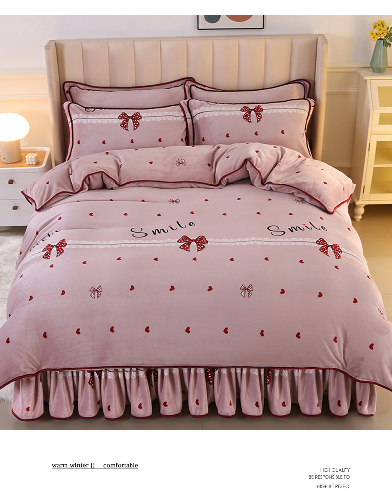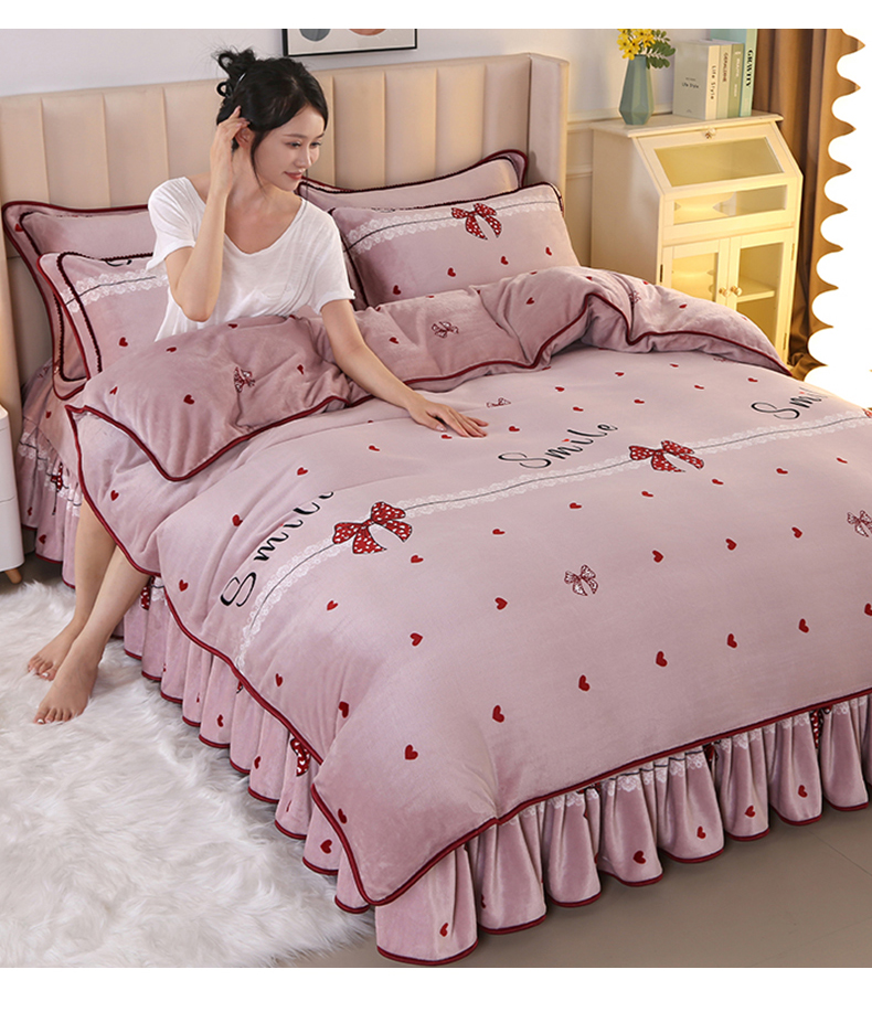 商品名称:橘姿 2024新款8斤床裙款牛奶绒四件套 浪漫甜心