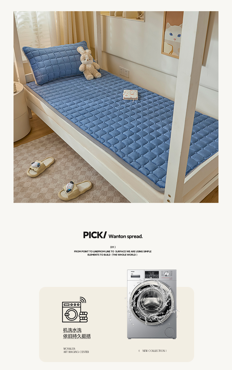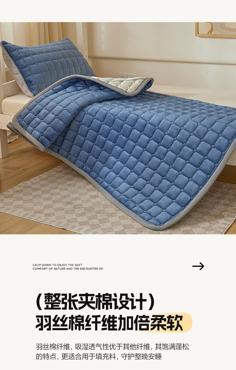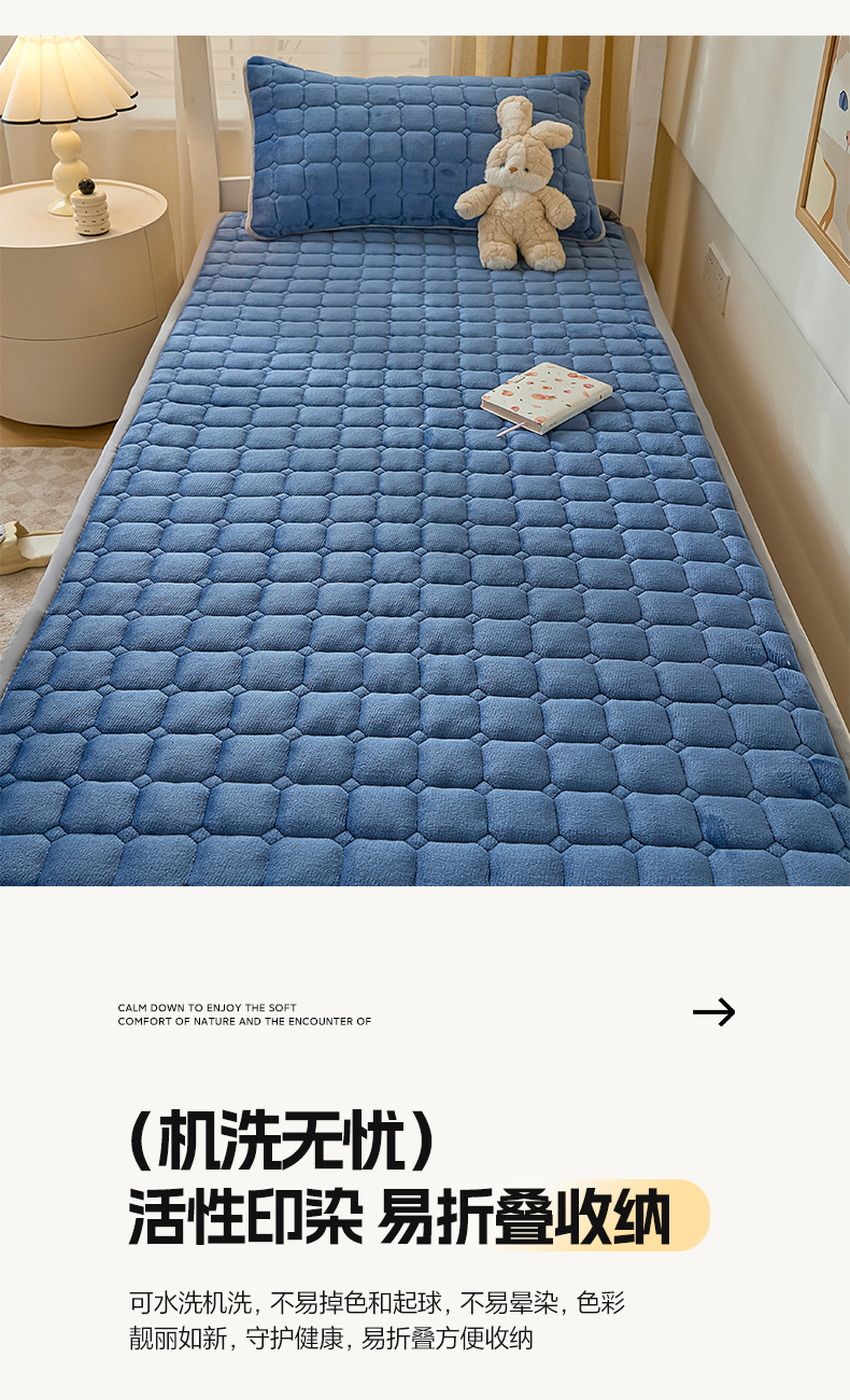 商品名称:卡伦家纺 2025新款A类牛奶绒夹棉加厚床垫学生宿舍单人床垫 宝石蓝