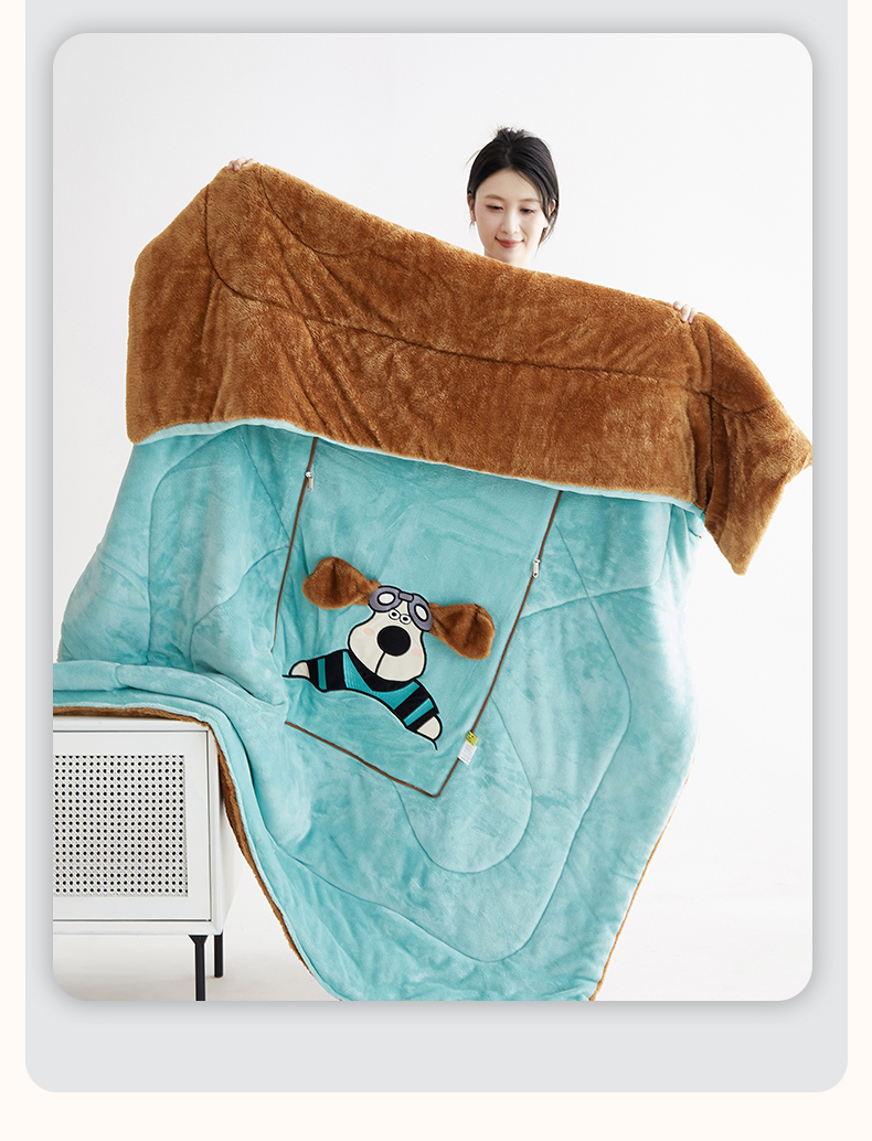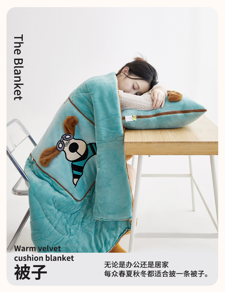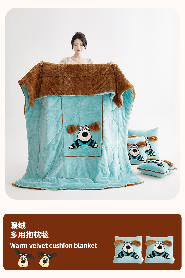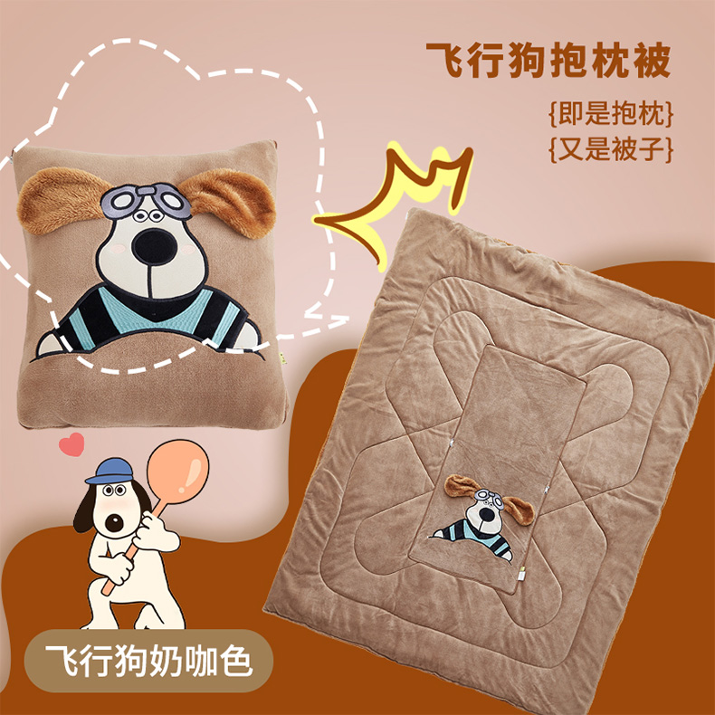 商品名称:古本家居 2024新款飞行狗贴布立体卡通刺绣抱枕被 飞行狗奶咖色
