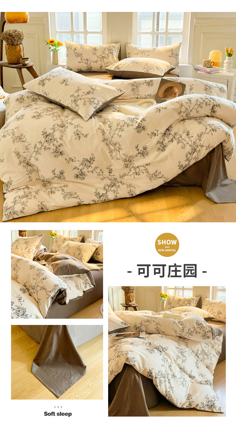 千朵 2024新款全棉磨毛四件套 可可庄园