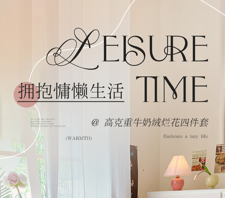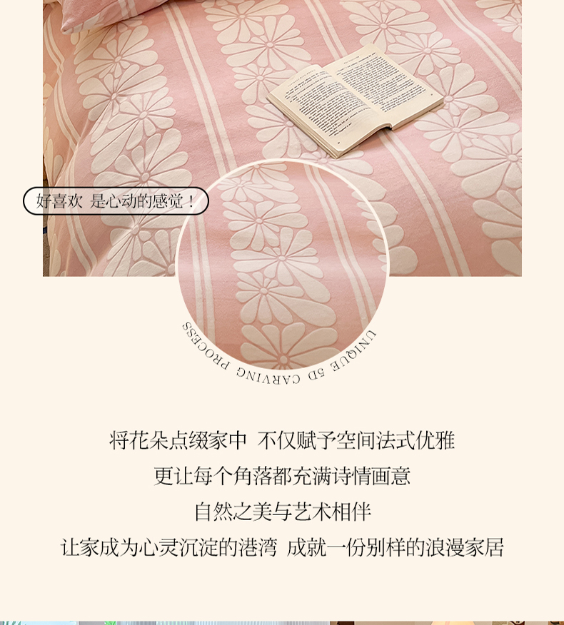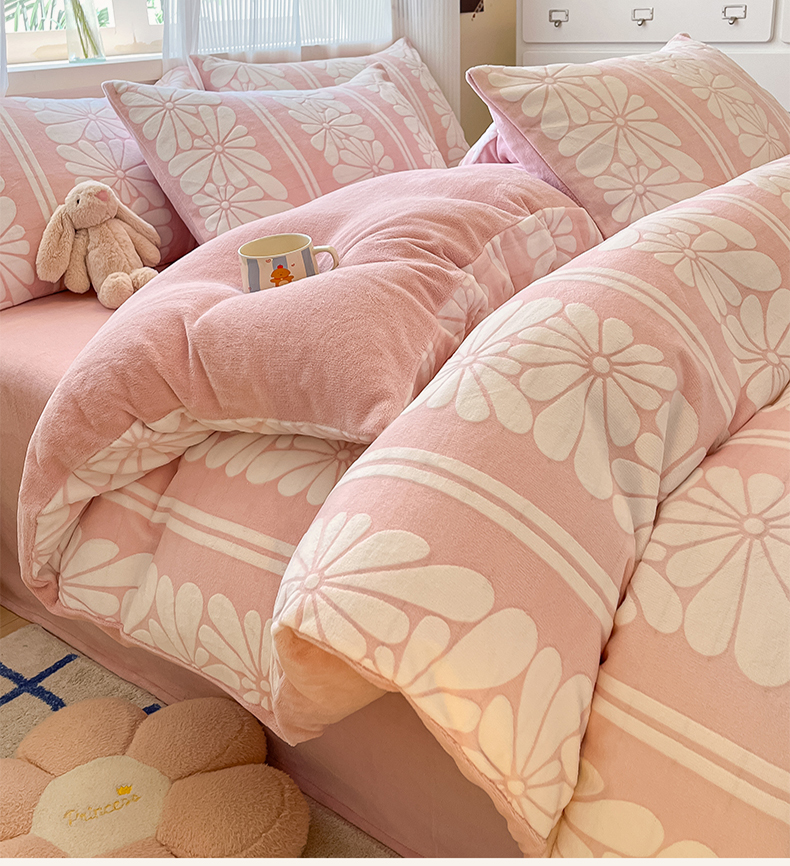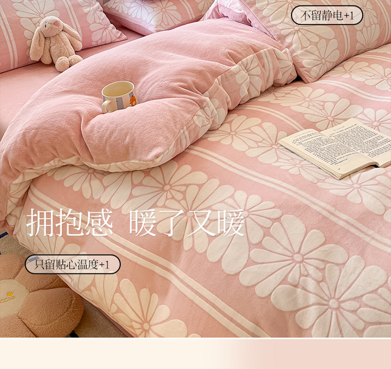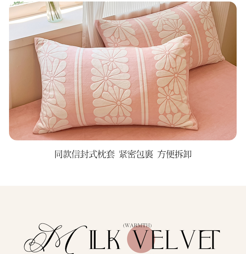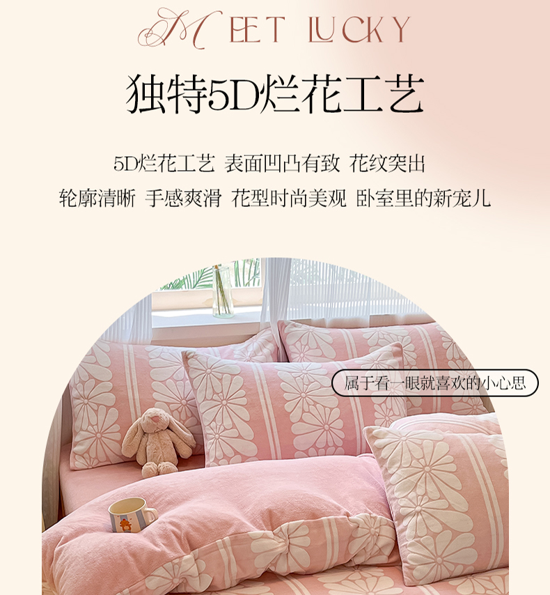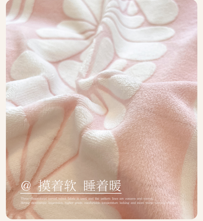 商品名称:高克重上色立体雕花牛奶绒着色烂花四件套宝宝绒婴儿绒秋冬加厚法兰绒珊瑚绒三件套 晚意-粉
