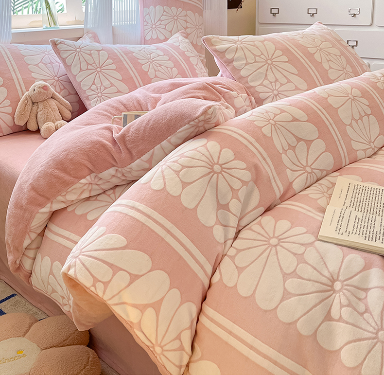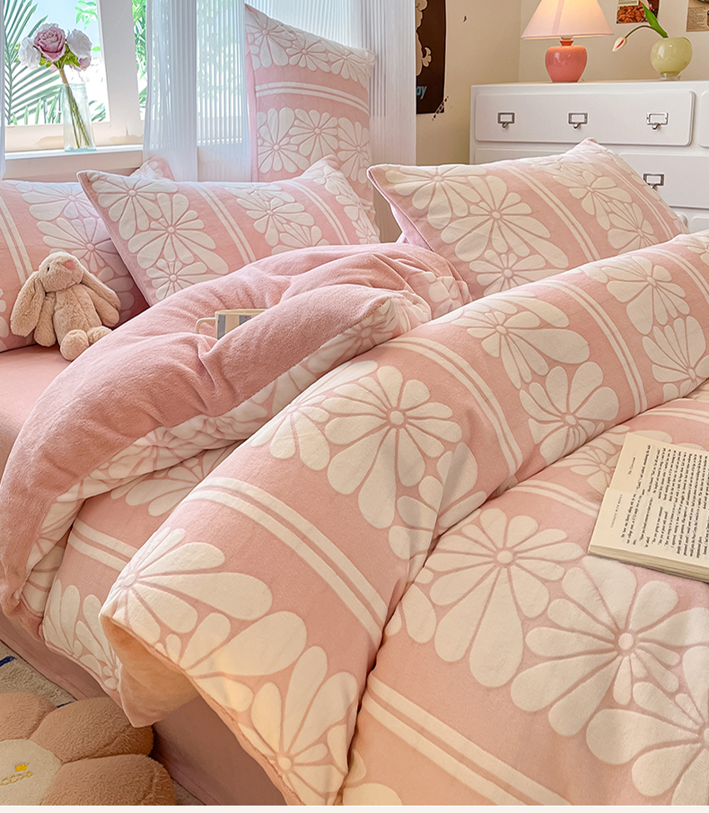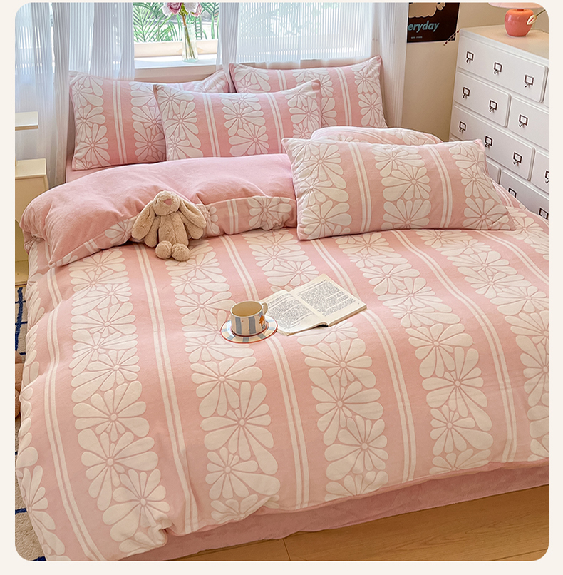 高克重上色立体雕花牛奶绒着色烂花四件套宝宝绒婴儿绒秋冬加厚法兰绒珊瑚绒三件套 晚意-粉
