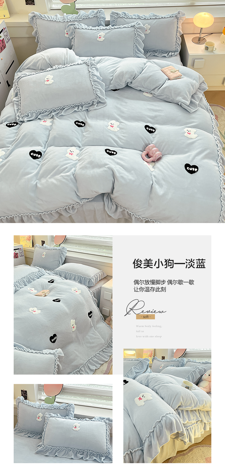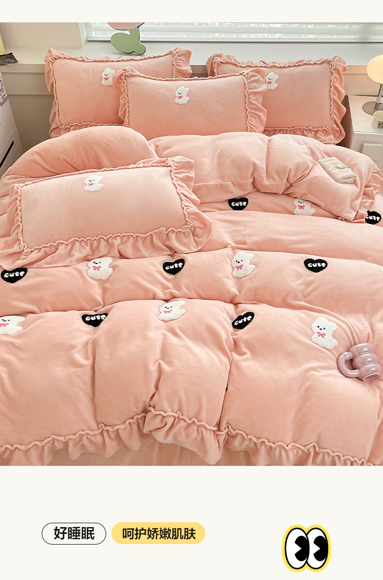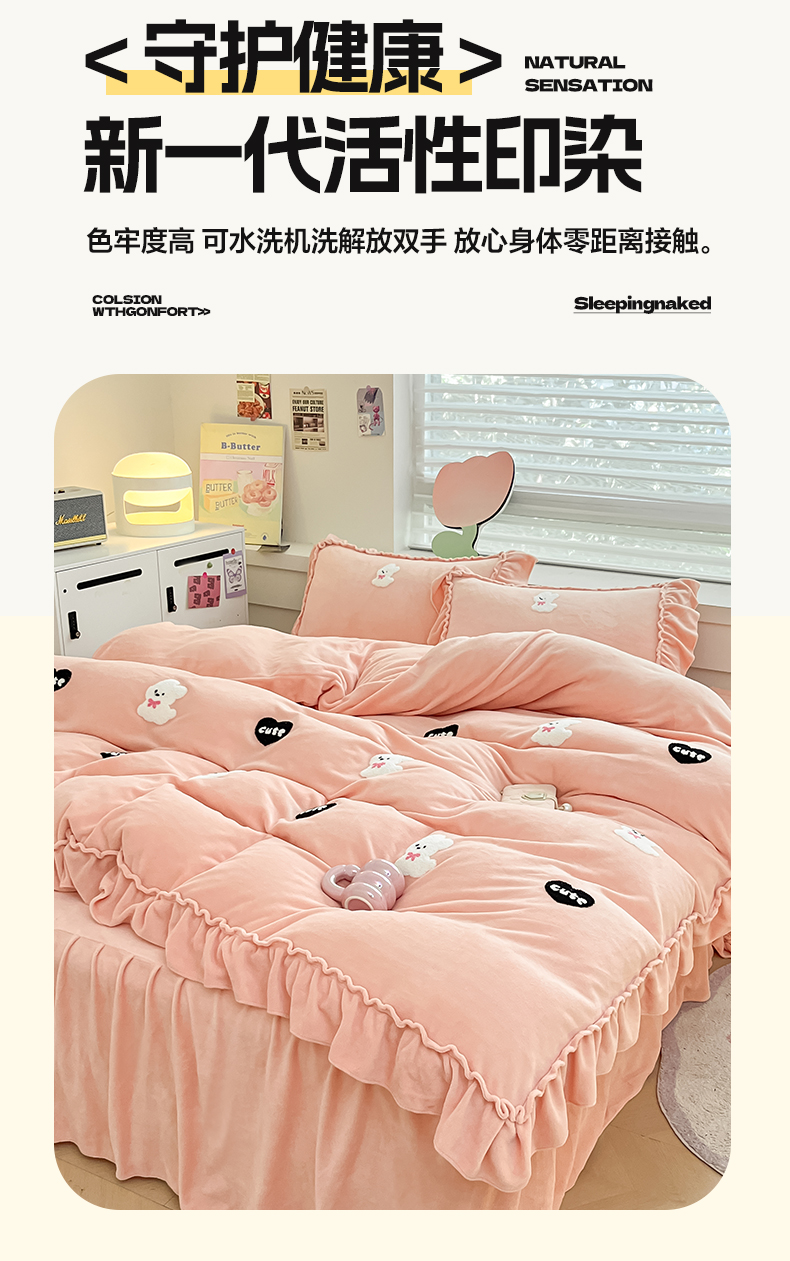 亨通家纺 2024新款高克重法式牛奶绒四件套系列-可爱风 可爱风-奶黄