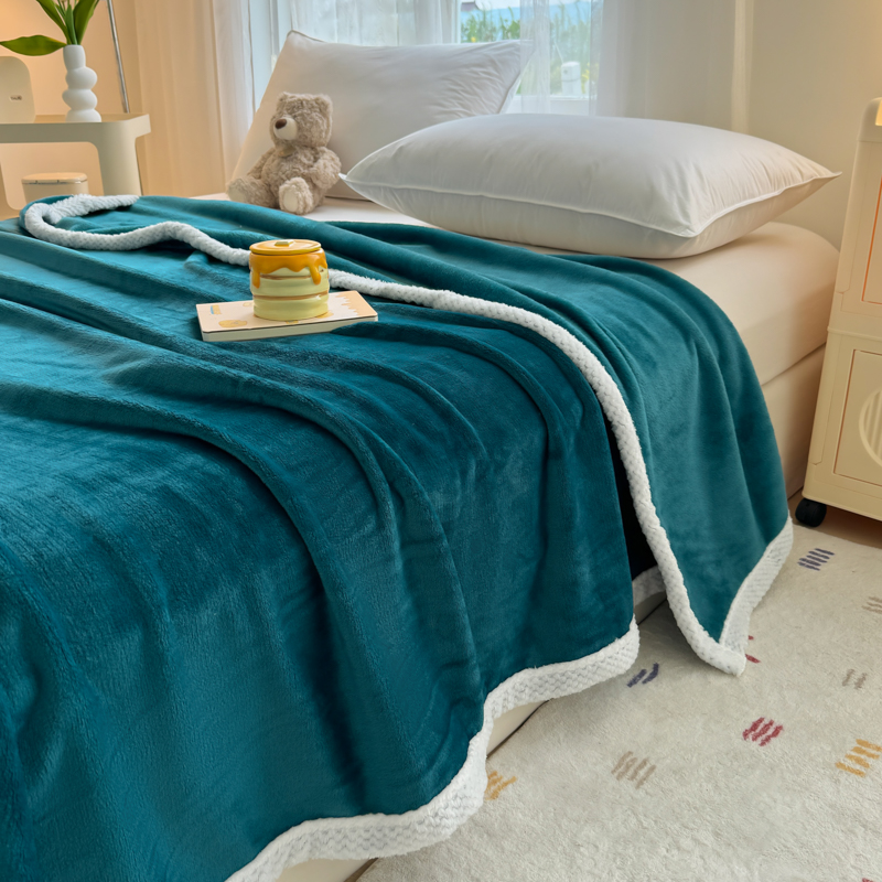 侨鑫 2024新款高克重牛奶绒纯色毛毯 深蓝