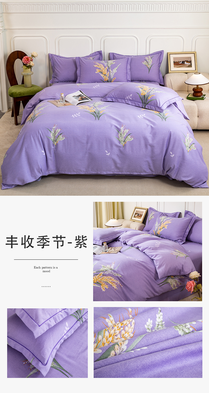 当前位置: 91家纺网 > 商品网购 > 床品套件 > 四件套 > 全棉普通四件套 > 威布斯 2025新款加厚纯棉全棉磨毛三件套四件套 丰收季节-紫