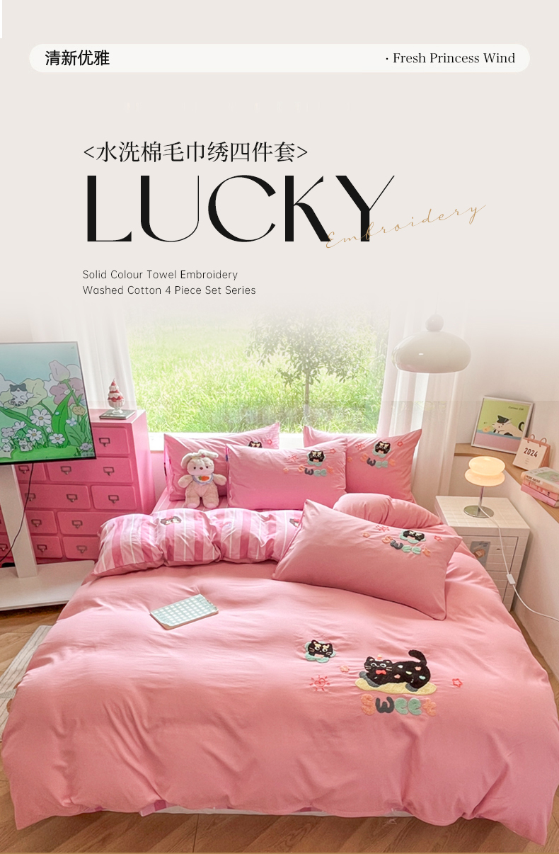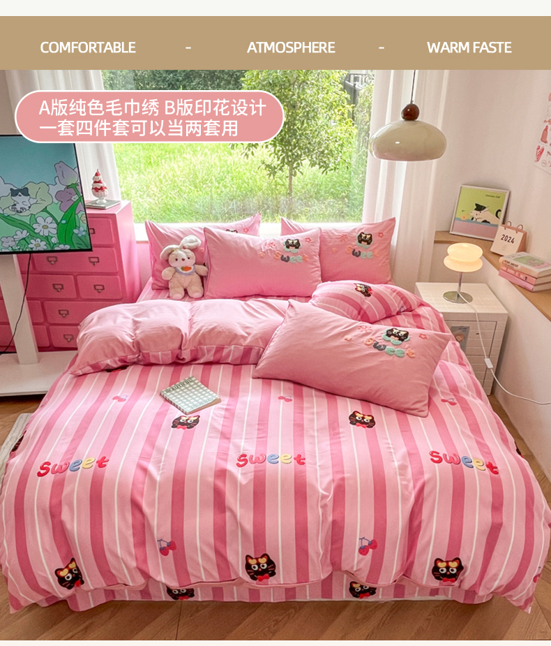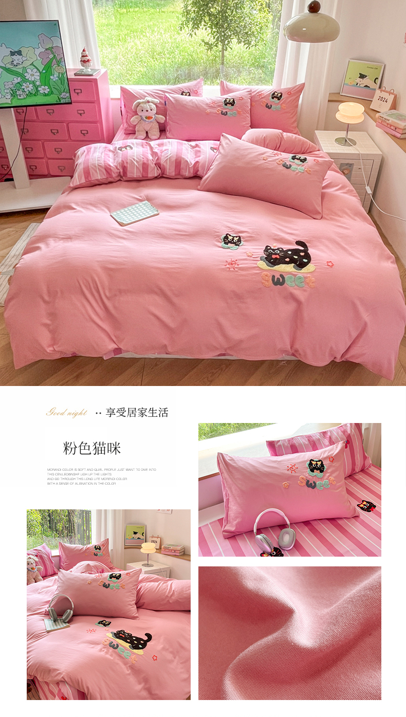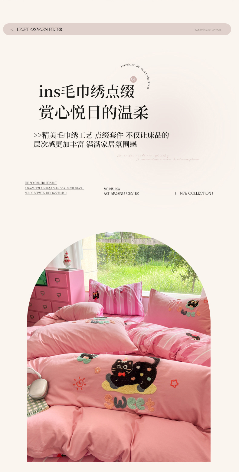 当前位置: 91家纺网 > 商品网购 > 床品套件 > 四件套 > 水洗棉四件套 > 晚爱家纺 2025新款A类ins风毛巾绣超柔亲肤云朵棉四件套 粉色猫咪